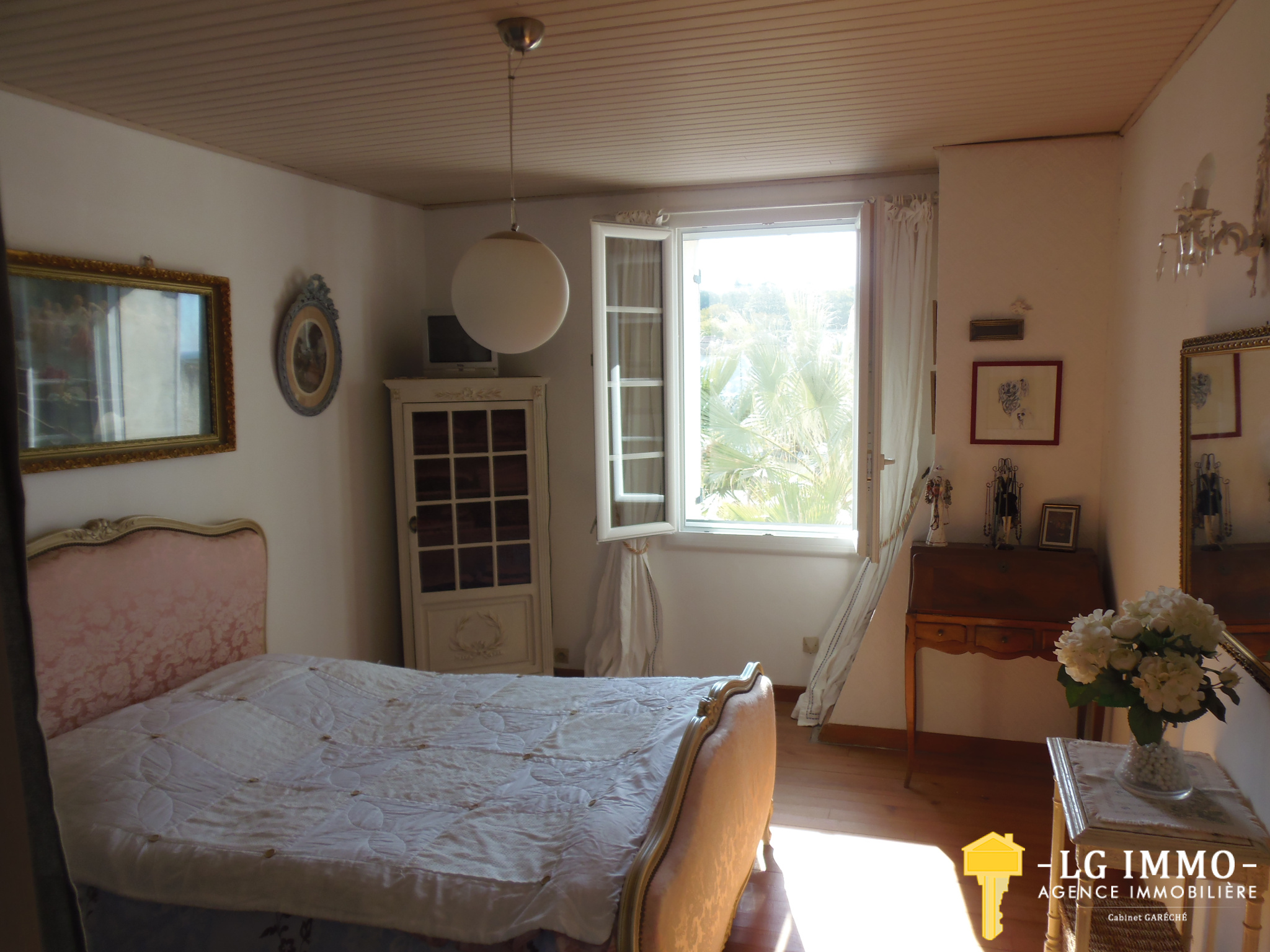 La propriété elle-même a un grand salon/séjour de 40m² avec un poêle à bois, une cuisine de 16.35m² avec coin repas, une chambre de 14.35m² au rez-de-chaussée avec sa propre douche et w/c, une belle véranda, toute neuve, et double vitrage tout neuf. A l'étage se trouvent 3 autres chambres de 14m², 13.65m² et 13m² qui donnent toutes sur le port, une salle d'eau de 8m² avec double vasque et wc, le grand palier de 28.40 m2 sert de second salon. Le dernier étage qui surplombe également le port est utilisé comme atelier d'art. Sa cour, qui donne sur le port, est joliment agrémentée de palmiers et de plantes méditerranéennes.