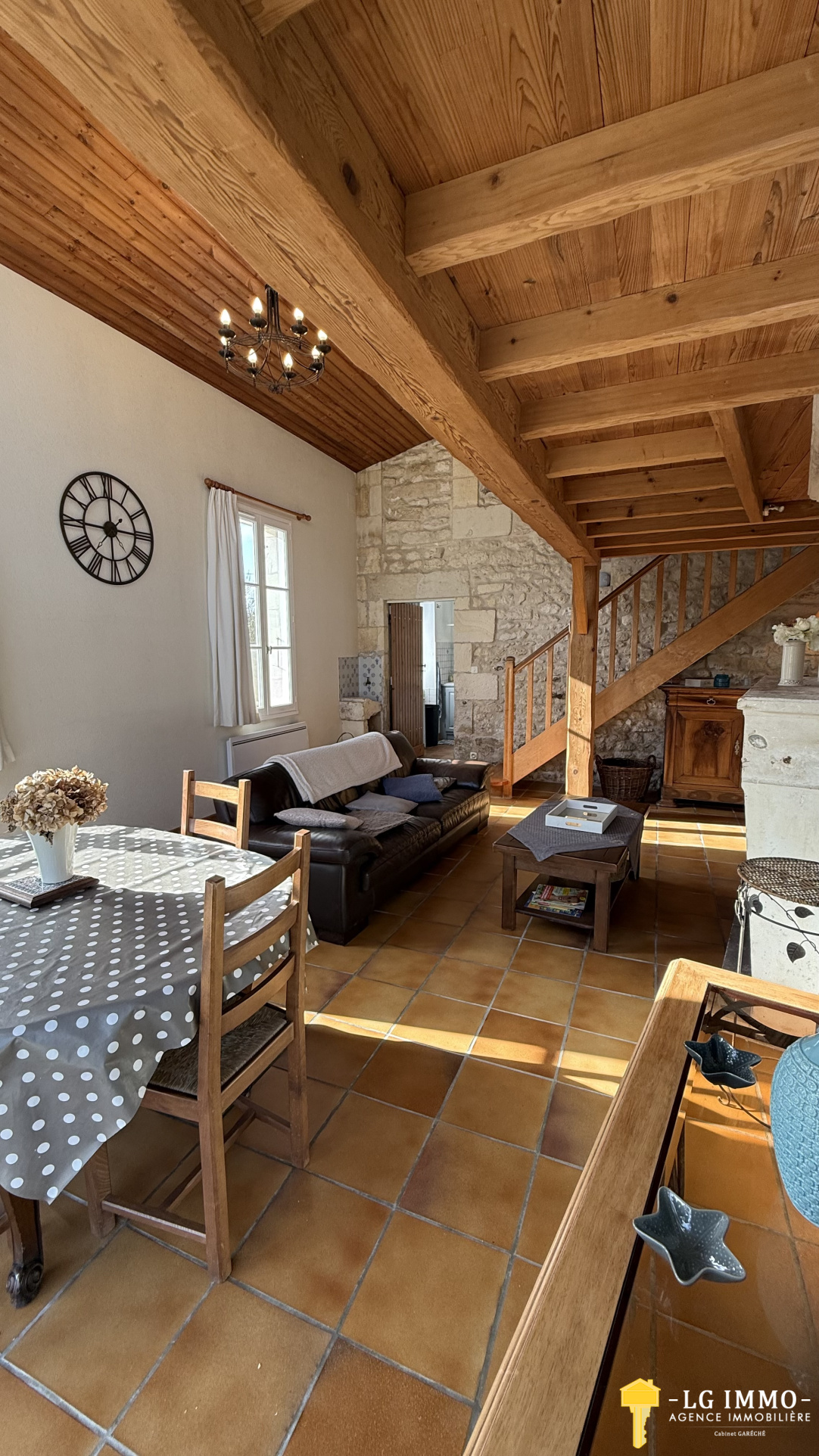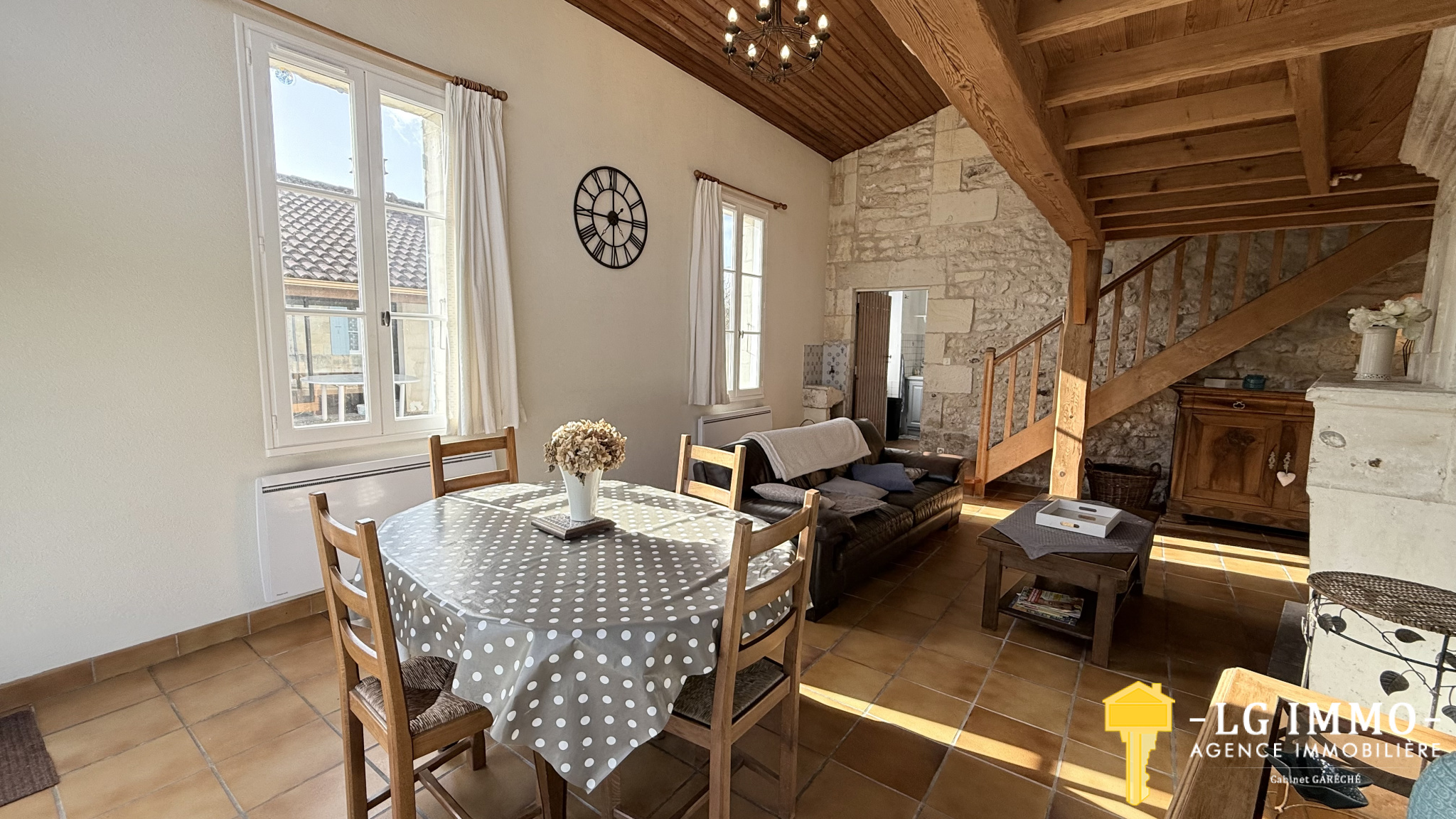 Au cœur d’un environnement paisible et verdoyant, cette authentique maison en pierres de taille datant de 1800 dévoile tout le charme et la générosité des belles demeures d’autrefois. Derrière sa façade pleine de caractère, la maison offre des volumes harmonieux et lumineux, parfaits pour accueillir une vie de famille chaleureuse. Dès l’entrée de 11 m², un bel escalier ancien donne le ton et souligne le cachet de la maison. Le rez-de-chaussée s’organise autour d’une cuisine équipée de 12 m², d’une spacieuse salle à manger familiale de 22,20 m², et d’un salon de 27,5 m² avec cheminée ouverte, avec une belle hauteur cathédrale gräce à la mezzanine au dessus, donnant directement sur la terrasse et le jardin . c'est le véritable cœur de la maison où l’on imagine déjà les soirées d’hiver au coin du feu. Un couloir dessert une salle de bain de 6,50 m², un WC indépendant, ainsi qu’une spacieuse chambre de 24,50 m² avec dressing et grande baie vitrée ouvrant sur la terrasse., apportant lumière et douceur de vivre. Une salle d’eau avec espace buanderie complète ce niveau, ainsi qu’une cave de 4,3 m² discrètement intégrée dans la maison. À l’étage, deux belles chambres de 15,5 m² et 20 m², dont une avec un point d’eau, prolongent l’espace nuit. Depuis le salon, un second volume surprend et séduit : une grande mezzanine lumineuse de 41 m² au sol, éclairée par de larges baies fixes et deux fenêtres de toit, menant à une chambre de 27 m² au sol, un espace idéal pour les enfants, une salle de jeux ou un coin détente hors du temps. À l’extérieur, le charme opère immédiatement : la propriété s’ouvre sur un magnifique jardin clos et arboré, sans vis-à-vis, véritable écrin de nature ponctué de nombreux arbres fruitiers. Les dépendances offrent de multiples possibilités et participent au caractère du lieu : garage avec mezzanine de 27 m², double préau de 34,5 m² avec belle hauteur, salon d’été de 24,5 m² avec cheminée/barbecue et éléments de cuisine, cellier, atelier, abri bois, deux anciennes cabanes à cochon et un puits avec pompe de relevage, autant d’espaces propices aux projets, aux moments conviviaux et aux plaisirs de la vie au grand air. La maison bénéficie d’équipements appréciables pour le confort quotidien : menuiseries en double vitrage et triple vitrage pour les grandes baies, radiateurs en fonte à double corps de chauffe, toiture révisée et nettoyée en 2020, ainsi qu’une salle de bain entièrement rénovée en 2025. Située dans un village vivant et agréable, disposant de commerces et services de proximité (boulangerie, restaurant, épicerie, poste, vétérinaire, garage…), la propriété profite d’une localisation idéale : à seulement 6 minutes de l’estuaire et du charmant port de plaisance de Mortagne-sur-Gironde, et à 20 minutes des plages de Meschers, offrant un équilibre parfait entre campagne, estuaire et océan. La départementale vous menera à l'entrée de Bordeaux en 1h et de La Rochelle en 1h10 Une maison pleine d’âme et de caractère, où chaque espace invite à imaginer une nouvelle histoire de vie. Ne passez pas à côté de cette belle opportunité, contactez rapidement Isabelle Guffroy au 06.08.17.42.53 ou par mail : isabelle.guffroylgimmo@gmail.com Les surfaces au sol indiquées sont données à titre indicatif et n'ont aucune valeur contractuelle. Il faut tenir compte que certaines pièces sont sous pentes et quelles ont par endroit des hauteurs à - de 1.80m² de hauteur. Les informations sur les risques auxquels ce bien est exposé sont disponibles sur le site Géorisques