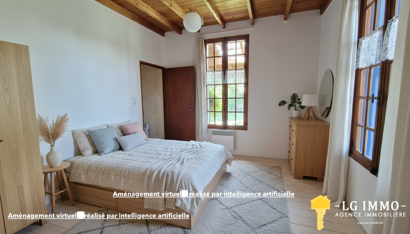 - LG IMMO - Cabinet GARÉCHÉ vous propose cette maison de plain-pied exposée sud d'environ 101 m2, idéalement située à 4 km de Mortagne-sur-Gironde, à 20km des premières plages de Meschers-sur-Gironde et à 30 km de Royan. Elle se compose d'un séjour de 17,10 m2 avec un poêle à bois, d'une cuisine de 20 m2, d'une salle de bain de 7,05 m2 ainsi qu'un WC indépendant de 1,25 m2. Vous trouverez un espace nuit comprenant trois chambres de 12,60 m2 et 12,10 m2 et la troisième 25,60 m2 avec sa sortie individuelle pouvant servir de studio pour un adolescent ou pour la création d'une suite parentale. Vous aurez la possibilité d'aménager une chambre à l'étage. Plusieurs dépendances accompagnent ce bien, une cave de 20,10 m2 idéale pour stocker du vin et en faire un atelier, un petit abri de jardin (moins de 5 m2) pouvant servir d'atelier de peinture, 2 garages de 23,15 m2 et 20,35 m2 dont un utilisé actuellement pour le sotckage de bois ainsi que deux auvents de 32 m2 et 8,70 m2. Le tout dans un parc arboré d'une surface de 5 595 m2 sur lequel vous trouverez des arbres fruitiers, vous aurez deux possibilités pour entrer sur la propriété. Dans un environement calme, sans voisin et sans vis-à-vis, vous pourrez profiter des journées ensoleillées. Pour le côté pratique, vous serez à proximité des grands axes routiers et de la déchetterie. La toiture est en partie à refaire. L'assainissement est individuel mais à refaire. La maison est chauffée par un poêle à bois dans le salon qui a été installé aux normes 2023, chauffage électrique. La maison est équipée deux 2 chauffes-eaux de 2020, un de 50 L au dessus de la cuisine, un second de 150 L dans la salle de bains. Les menuiseries sont en partie en double vitrage. Certains sols sont à refaire et la maison à remettre à votre goût. Le terrain est piscinable. Pour plus d'informations, contactez l'agence LG IMMO au 05 46 97 27 11 ou bien à l'adresse mail cabinet-gareche@lgimmo.net Estimation gratuite