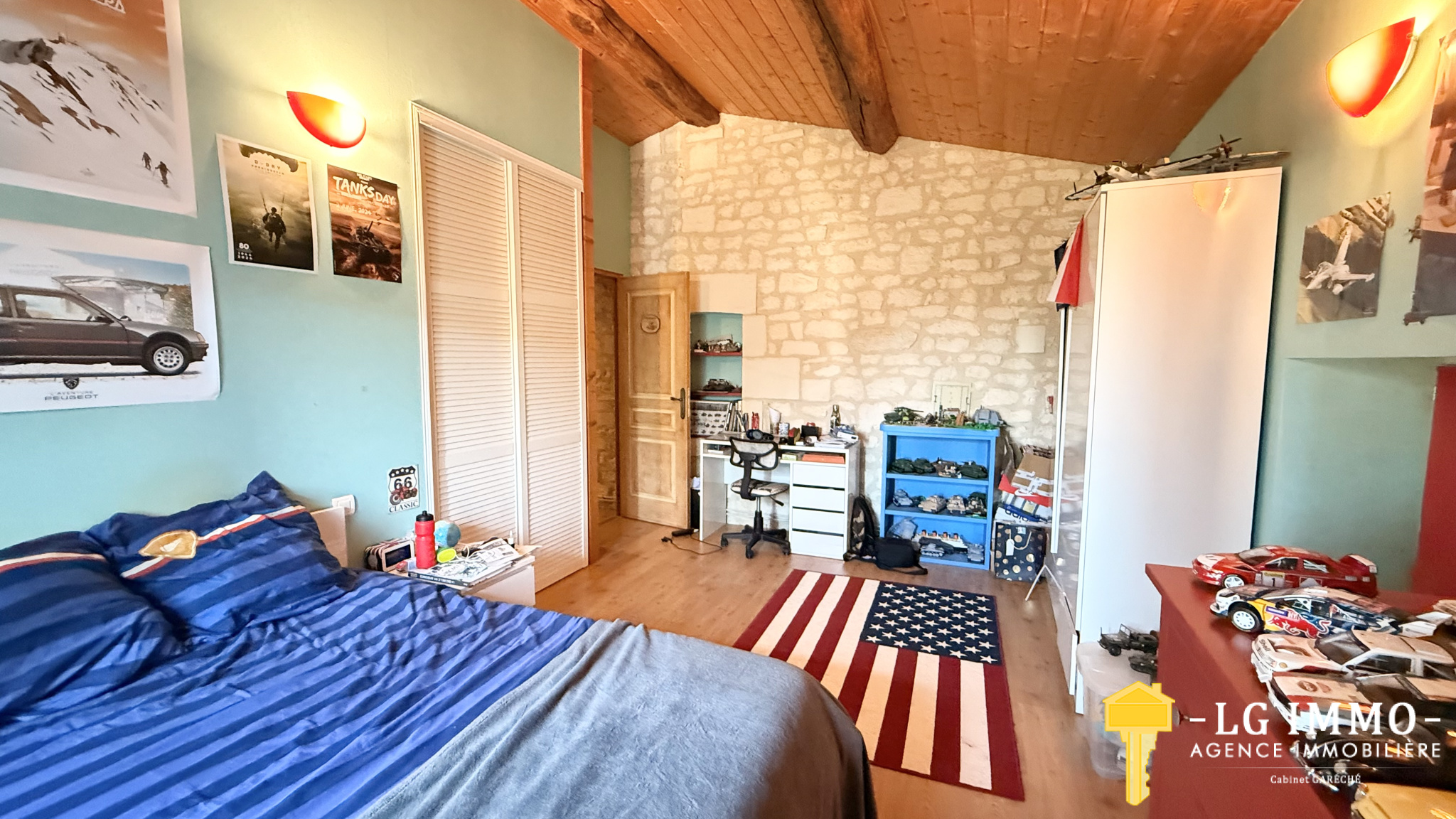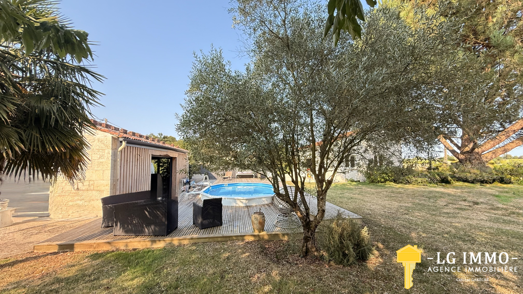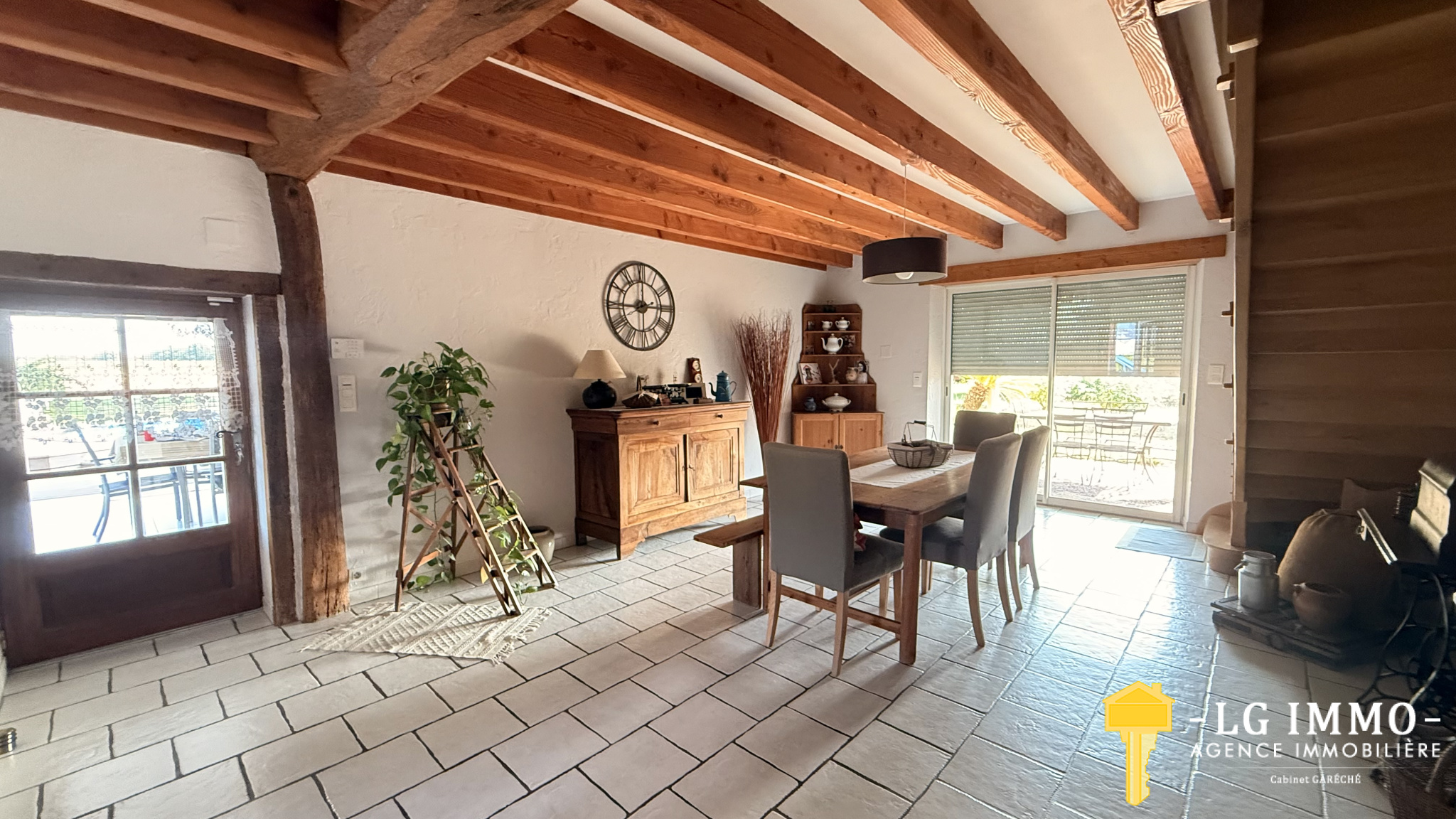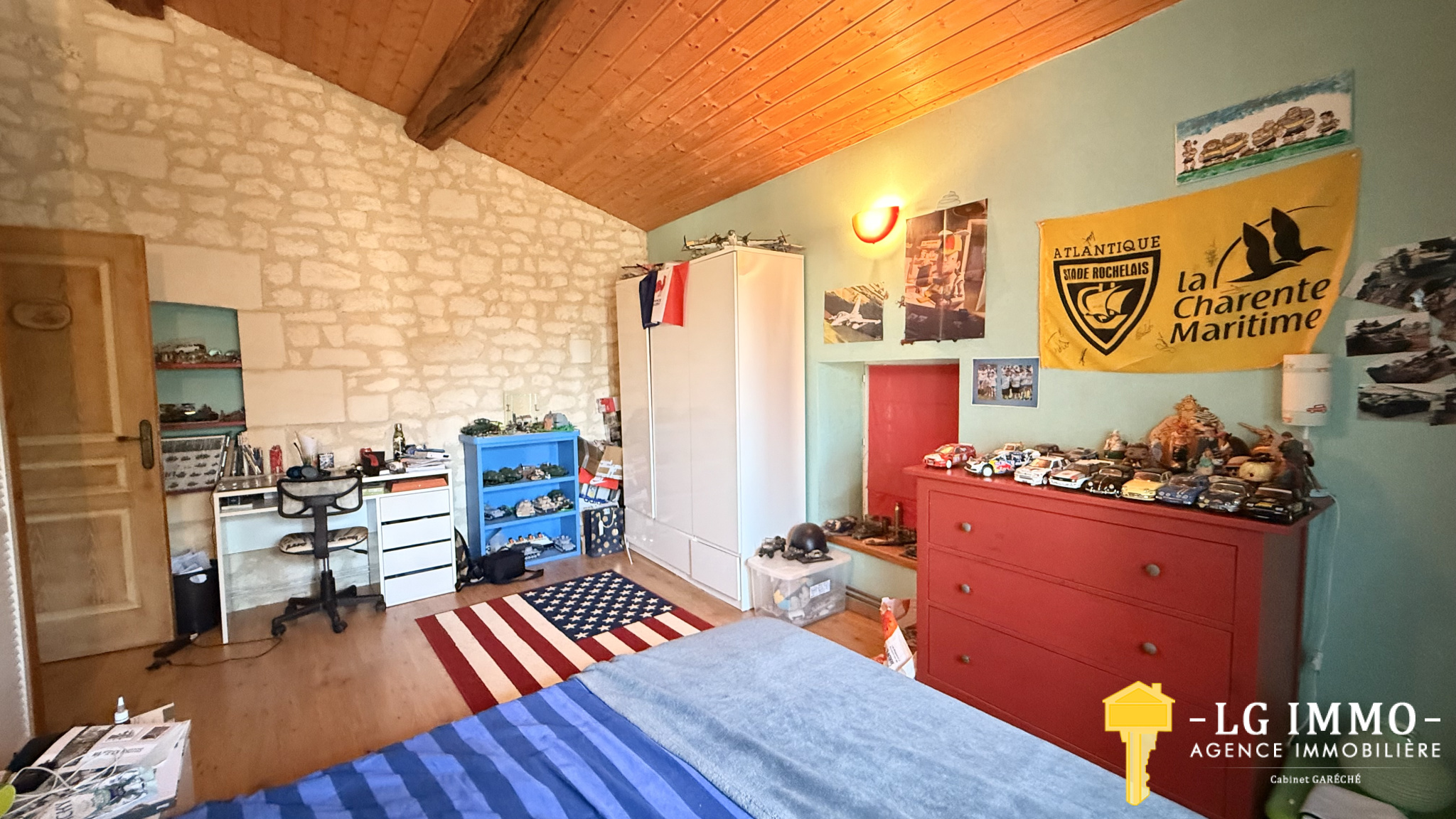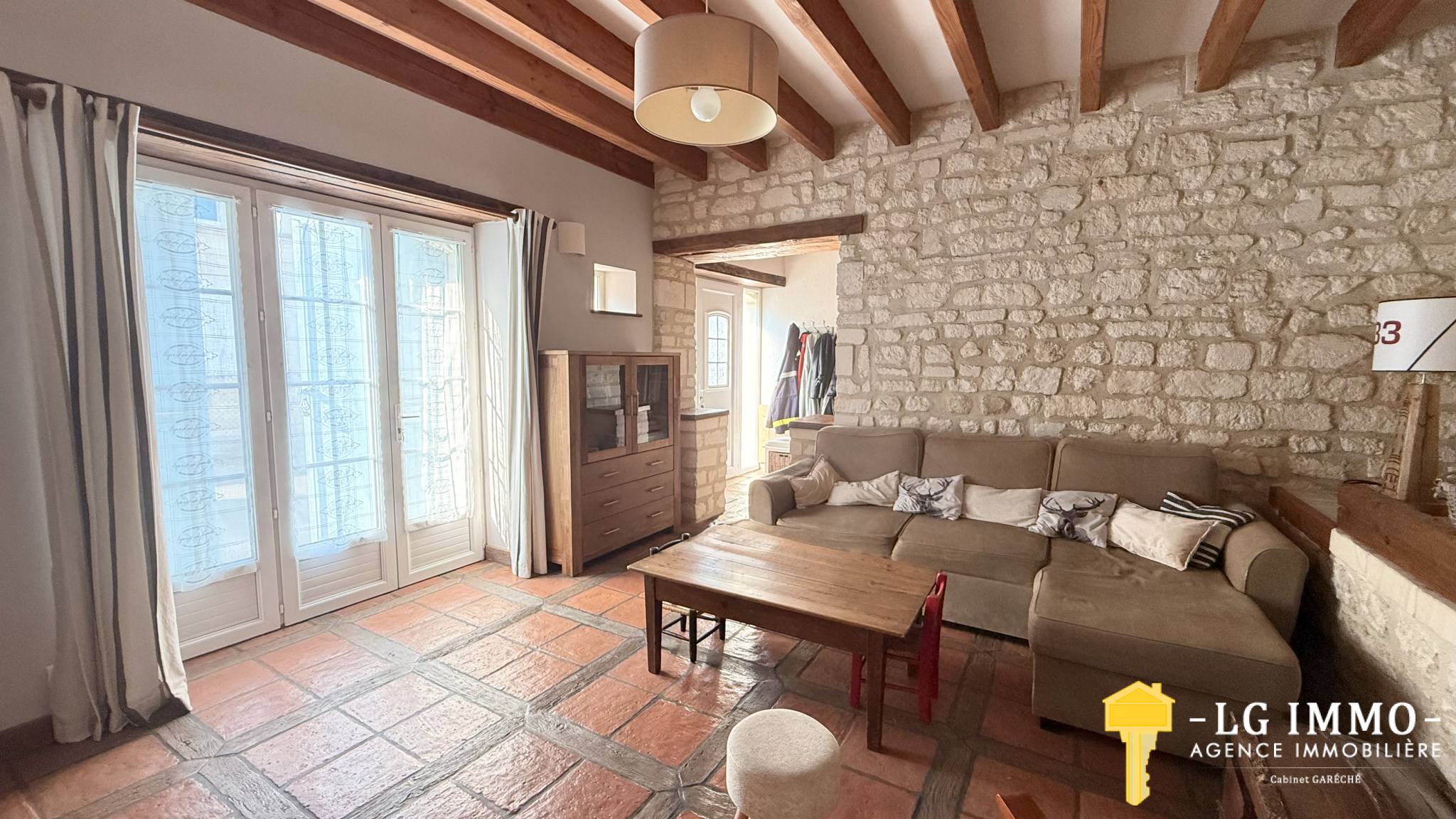 Laissez-vous séduire par le charme de cette authentique maison charentaise en pierre de 220m², idéalement située dans un paisible hameau de Tesson, face à la campagne, tout en bénéficiant de la proximité immédiate des commodités du village. Cette demeure pleine de caractère allie cachet de l’ancien et confort actuel, et se distingue par ses beaux volumes et sa luminosité. Véritable cœur de la maison, une superbe véranda de 47 m² s’ouvre largement sur la piscine avec sa belle baie vitrée à galandage avec 4.5m d'ouverture totale, offrant un espace de vie privilégié où profiter de chaque saison en toute convivialité. vous retrouvez également une cuisine avec cellier de 17m² , une salle à manger de 27m² et un salon cosy avec cheminée de 20m². A l'étage 4 chambres spacieuses de 17 m2, 21 m2,16 m2, et 16.5 m², reste à terminer la salle d'eau. À l’extérieur, le jardin arboré invite à la détente et aux moments partagés en famille ou entre amis. Côté pratique, un vaste garage double avec atelier de 43m² et galetas de 13m² vient compléter les prestations, parfait pour stationner, bricoler ou aménager un espace supplémentaire selon vos envies. Entre charme, confort et fonctionnalité, cette maison constitue une belle opportunité pour ceux qui recherchent la tranquillité de la campagne sans renoncer aux services et commerces de proximité (boulangerie, boucherie, supérette, école, poste, restaurant, pharmacie, cabinet médical, garage, coiffeur...)