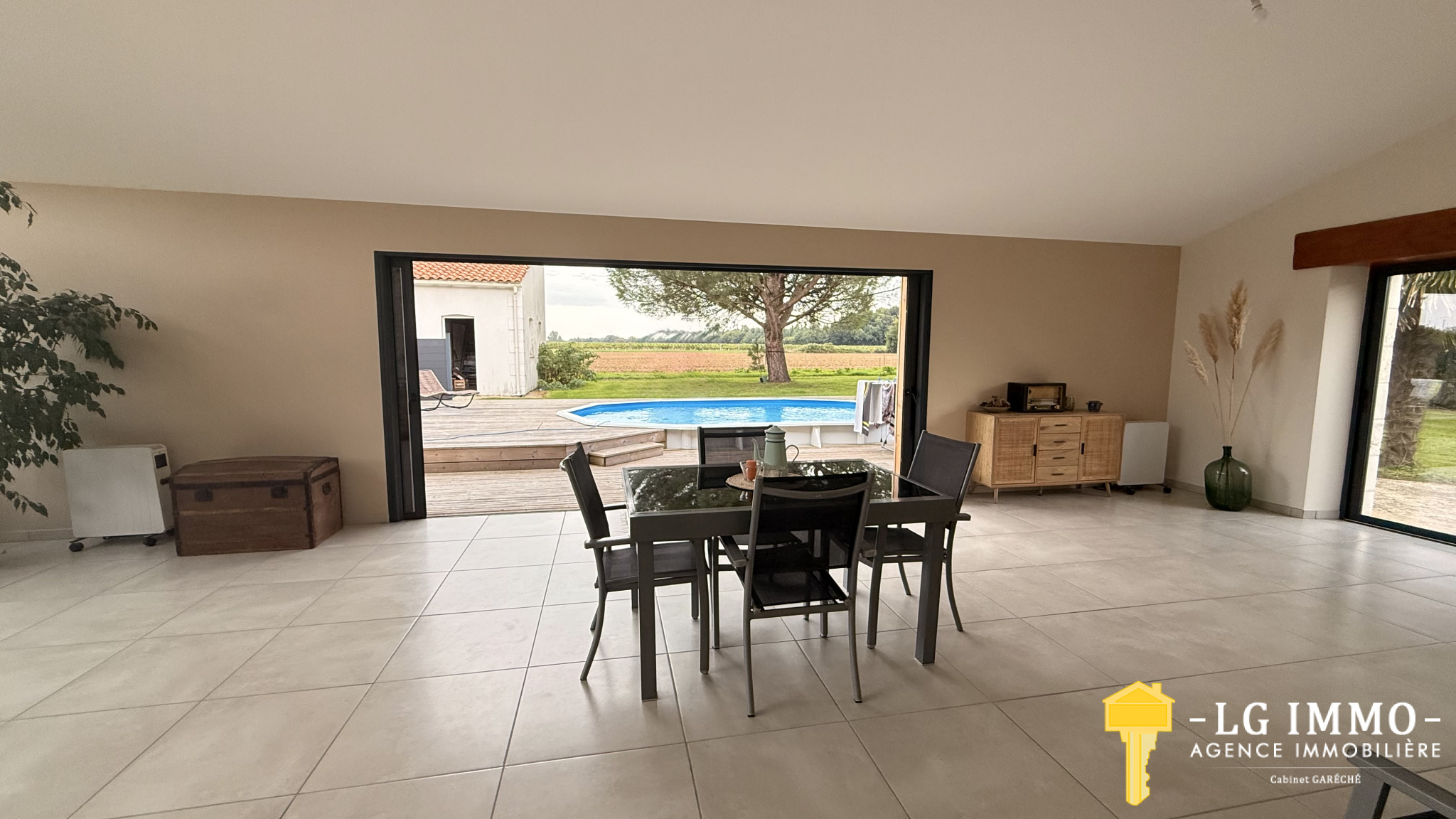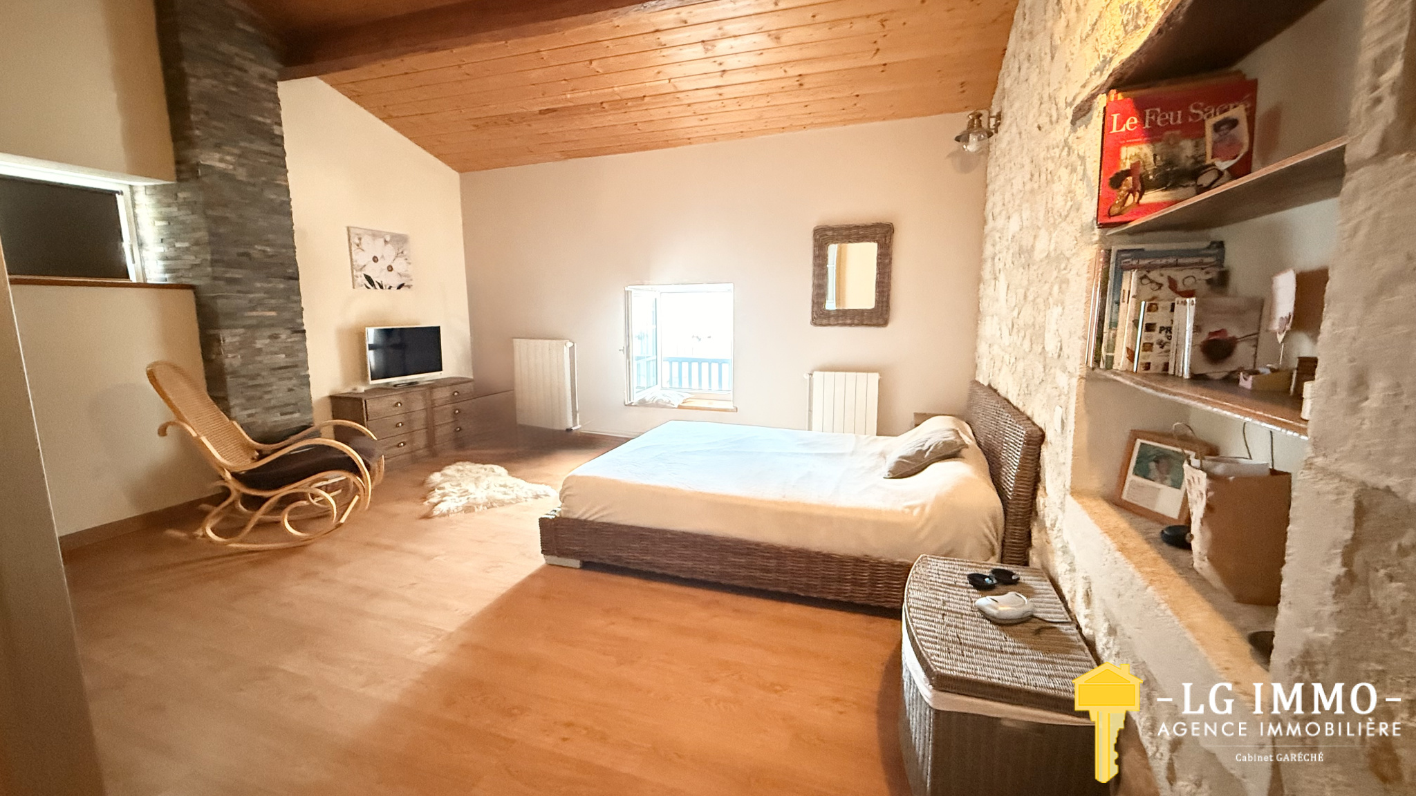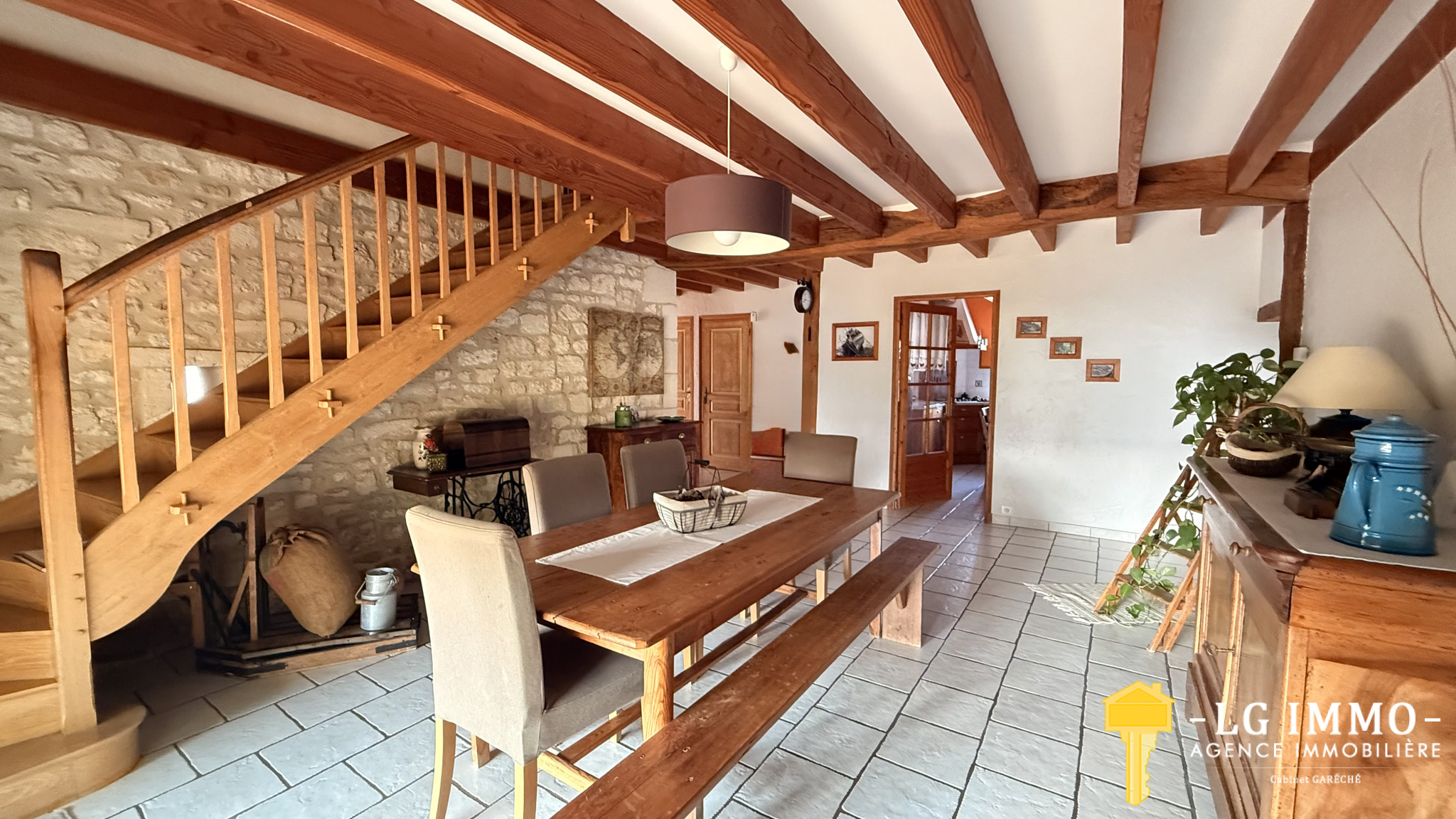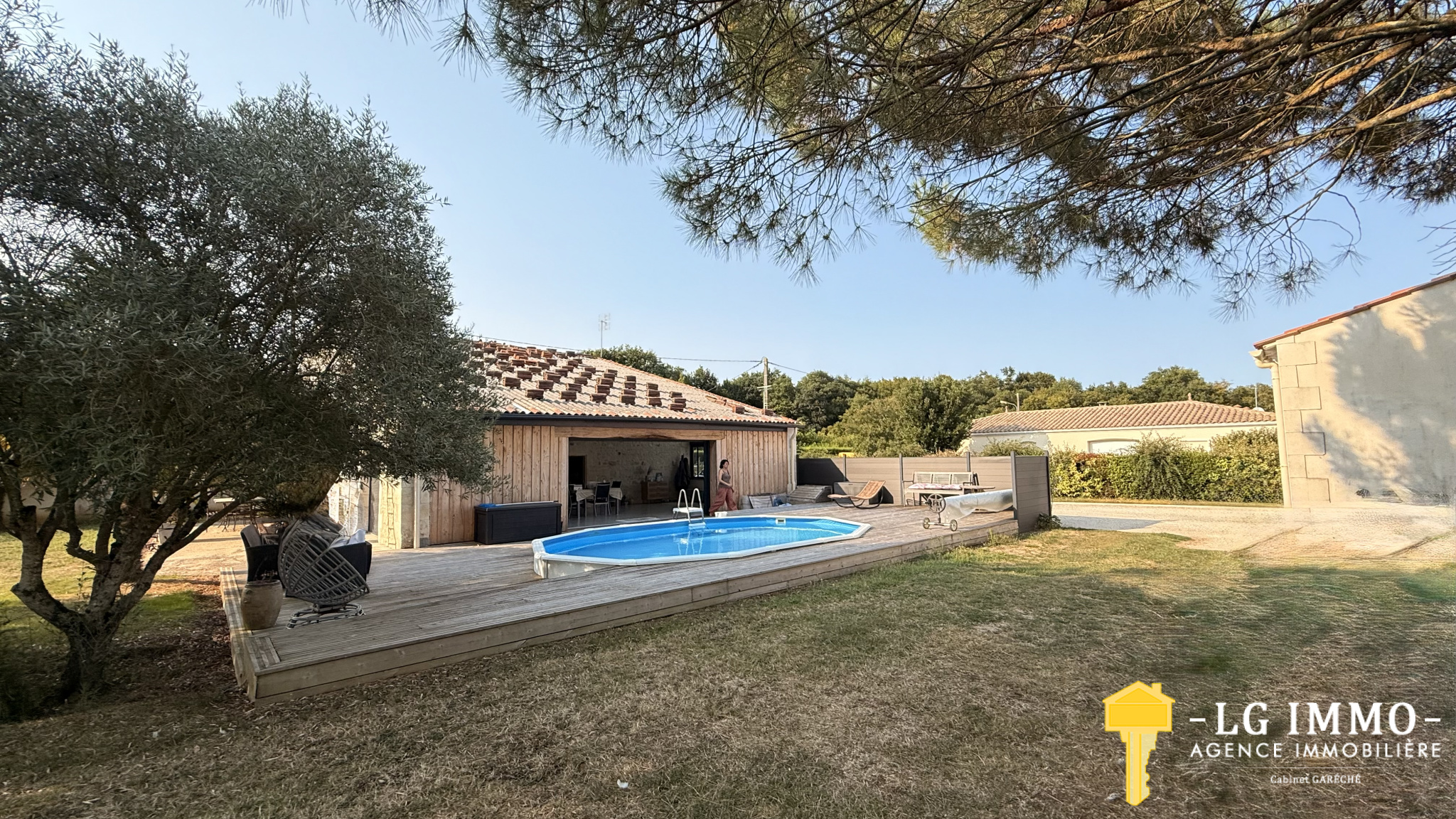 Laissez-vous séduire par le charme de cette authentique maison charentaise en pierre de 220m², idéalement située dans un paisible hameau de Tesson, face à la campagne, tout en bénéficiant de la proximité immédiate des commodités du village. Cette demeure pleine de caractère allie cachet de l’ancien et confort actuel, et se distingue par ses beaux volumes et sa luminosité. Véritable cœur de la maison, une superbe véranda de 47 m² s’ouvre largement sur la piscine avec sa belle baie vitrée à galandage avec 4.5m d'ouverture totale, offrant un espace de vie privilégié où profiter de chaque saison en toute convivialité. vous retrouvez également une cuisine avec cellier de 17m² , une salle à manger de 27m² et un salon cosy avec cheminée de 20m². A l'étage 4 chambres spacieuses de 17 m2, 21 m2,16 m2, et 16.5 m², reste à terminer la salle d'eau. À l’extérieur, le jardin arboré invite à la détente et aux moments partagés en famille ou entre amis. Côté pratique, un vaste garage double avec atelier de 43m² et galetas de 13m² vient compléter les prestations, parfait pour stationner, bricoler ou aménager un espace supplémentaire selon vos envies. Entre charme, confort et fonctionnalité, cette maison constitue une belle opportunité pour ceux qui recherchent la tranquillité de la campagne sans renoncer aux services et commerces de proximité (boulangerie, boucherie, supérette, école, poste, restaurant, pharmacie, cabinet médical, garage, coiffeur...)