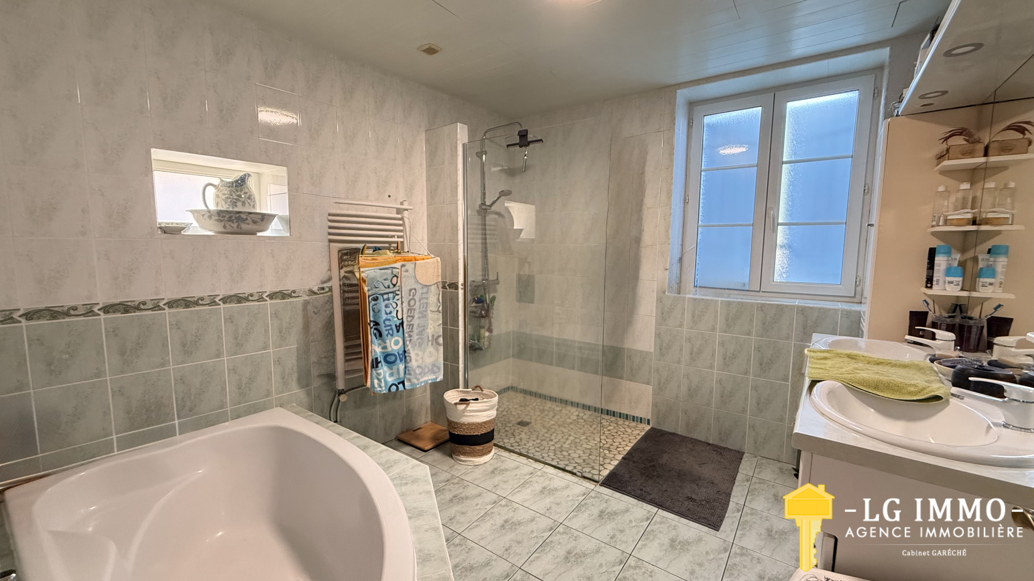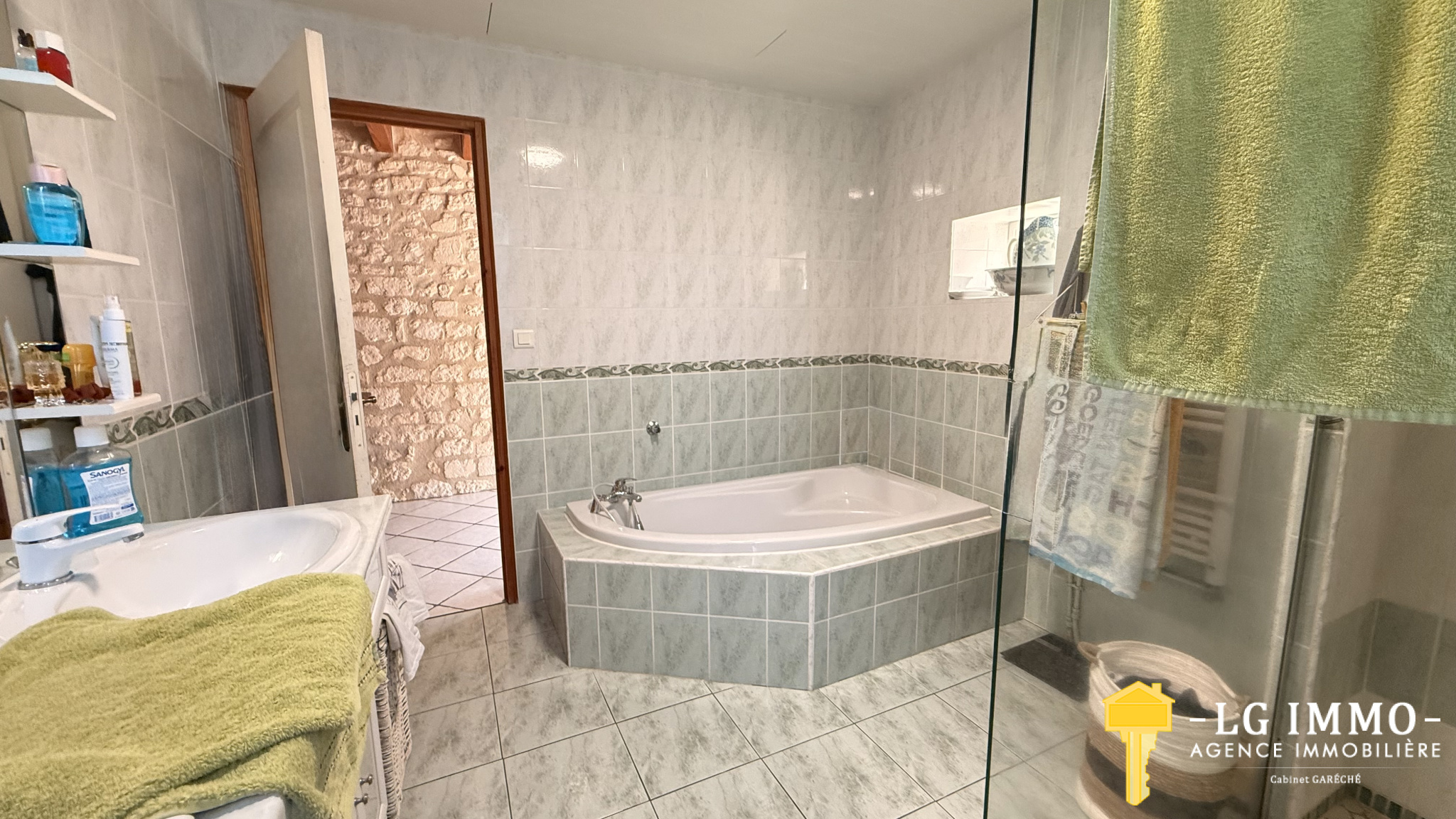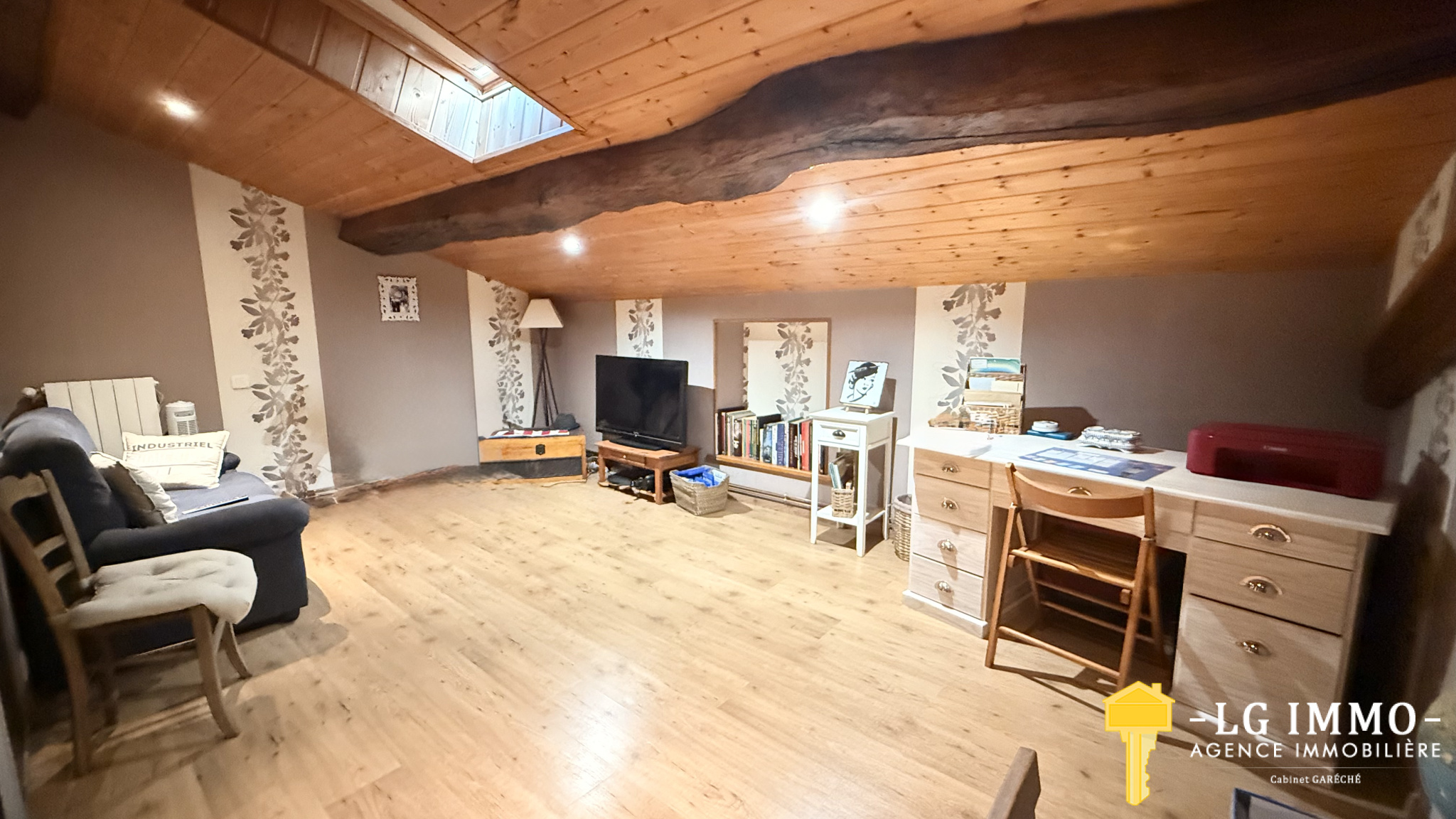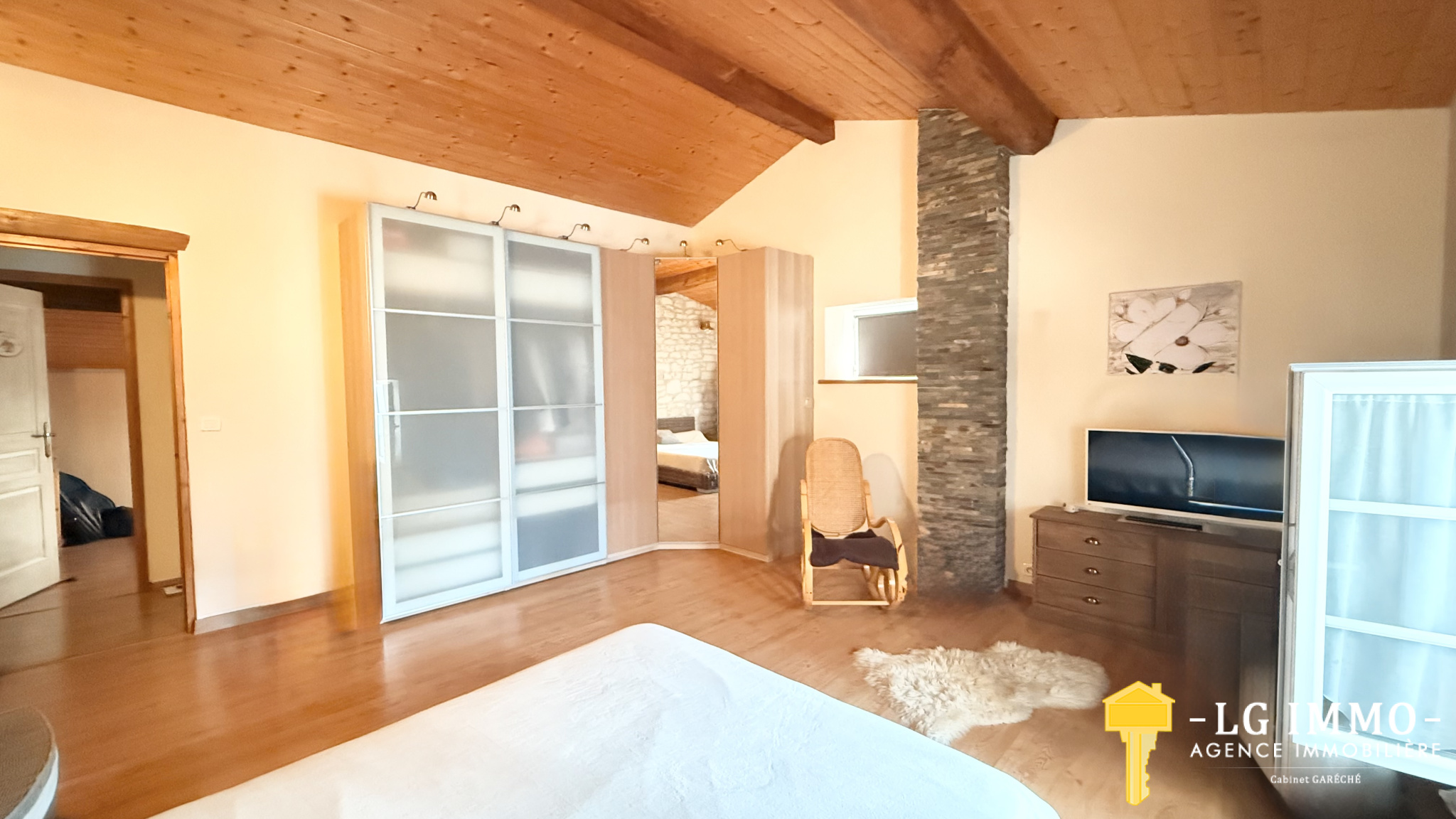 Laissez-vous séduire par le charme de cette authentique maison charentaise en pierre de 220m², idéalement située dans un paisible hameau de Tesson, face à la campagne, tout en bénéficiant de la proximité immédiate des commodités du village. Cette demeure pleine de caractère allie cachet de l’ancien et confort actuel, et se distingue par ses beaux volumes et sa luminosité. Véritable cœur de la maison, une superbe véranda de 47 m² s’ouvre largement sur la piscine avec sa belle baie vitrée à galandage avec 4.5m d'ouverture totale, offrant un espace de vie privilégié où profiter de chaque saison en toute convivialité. vous retrouvez également une cuisine avec cellier de 17m² , une salle à manger de 27m² et un salon cosy avec cheminée de 20m². A l'étage 4 chambres spacieuses de 17 m2, 21 m2,16 m2, et 16.5 m², reste à terminer la salle d'eau. À l’extérieur, le jardin arboré invite à la détente et aux moments partagés en famille ou entre amis. Côté pratique, un vaste garage double avec atelier de 43m² et galetas de 13m² vient compléter les prestations, parfait pour stationner, bricoler ou aménager un espace supplémentaire selon vos envies. Entre charme, confort et fonctionnalité, cette maison constitue une belle opportunité pour ceux qui recherchent la tranquillité de la campagne sans renoncer aux services et commerces de proximité (boulangerie, boucherie, supérette, école, poste, restaurant, pharmacie, cabinet médical, garage, coiffeur...)