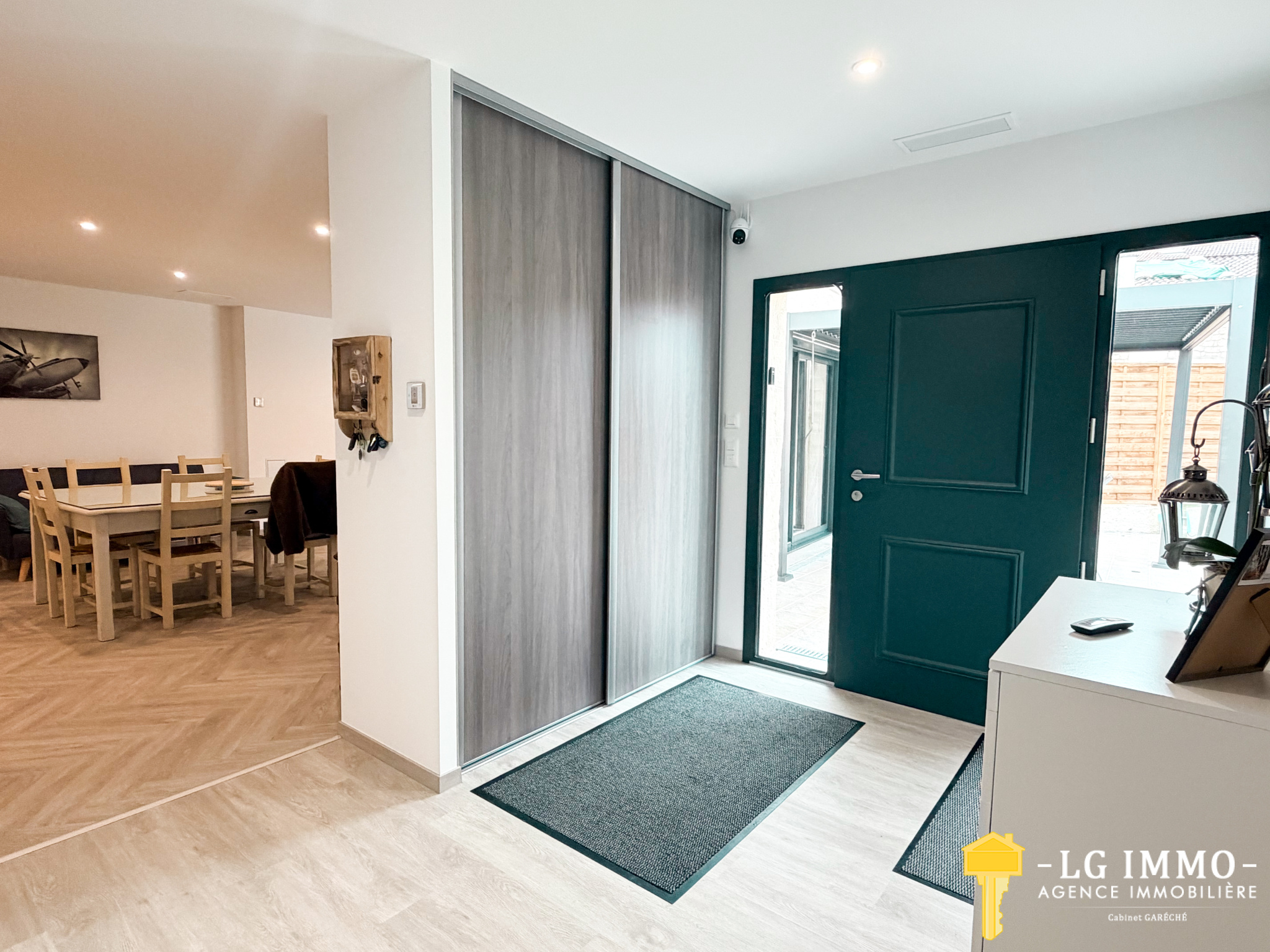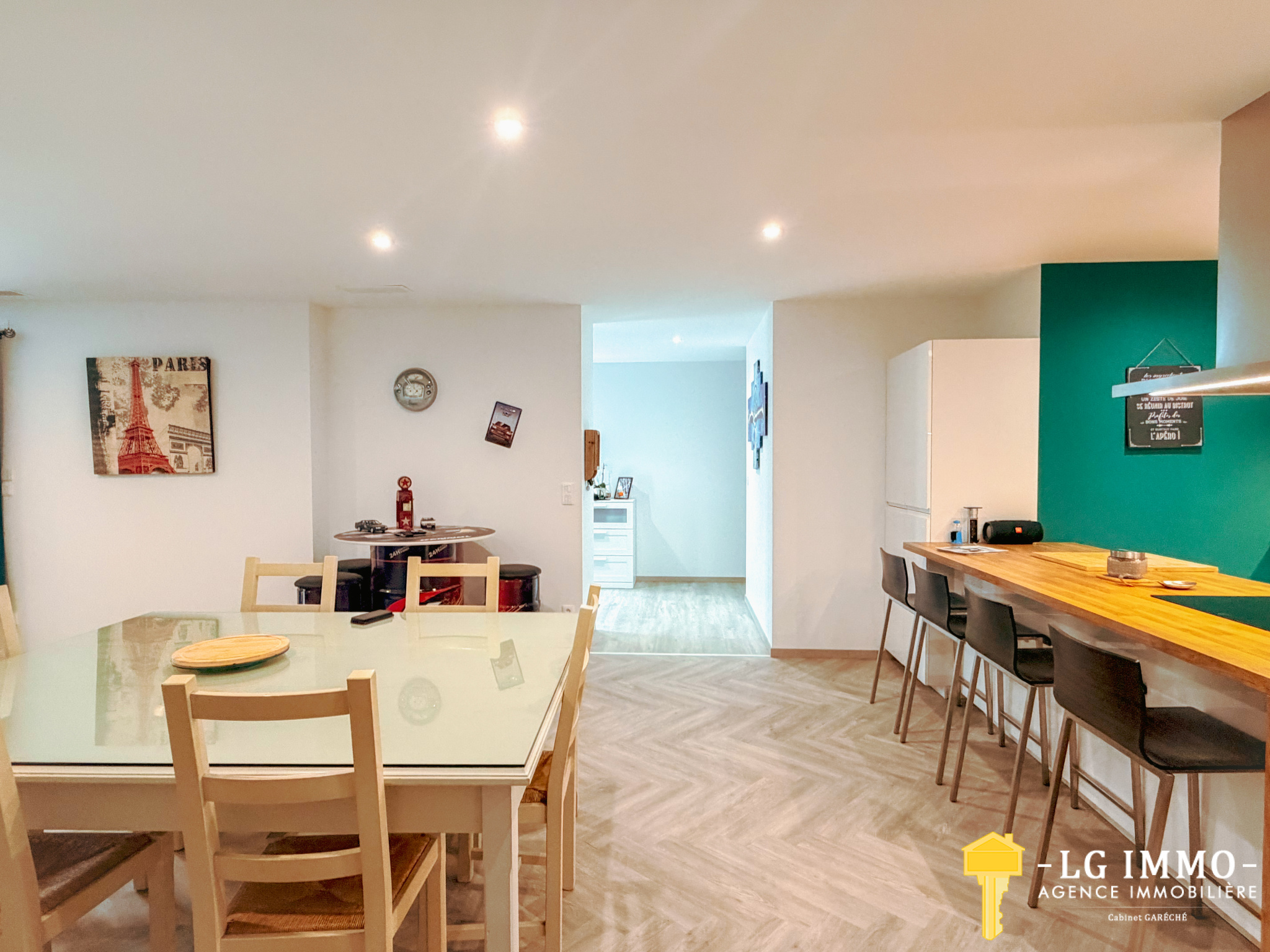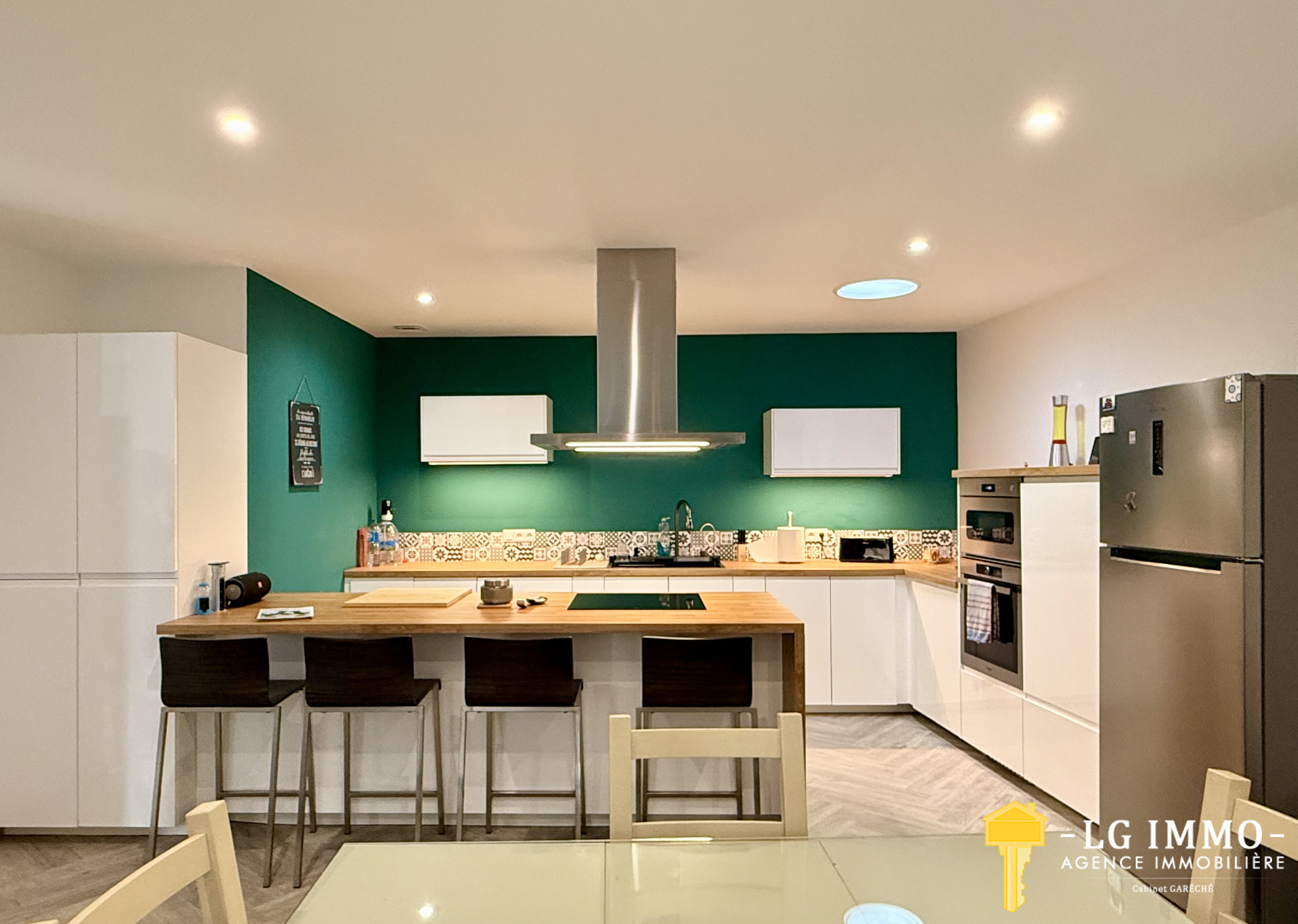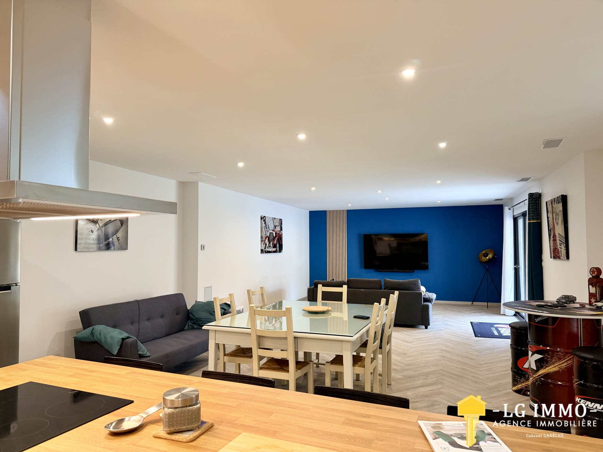 A seulement 15 minutes de SAINTES au cœur du bourg de THENAC et à proximité immédiate des commodités, l’Agence - LG IMMO - Cabinet GARÉCHÉ - Gémozac vous présente cette propriété de 164 m2, réhabilitée en 2022 avec des matériaux de haute qualité et conforme aux normes RT2012. Cette maison offre une vie de plain-pied avec une distribution intelligente optimisant l’espace. L’entrée spacieuse dotée d’un placard, donne accès à une pièce de vie lumineuse de 63m2 au design épuré et raffiné, intégrant une cuisine ouverte et entièrement équipée. La partie nuit comprend quatre chambres de 11 et 13 m2, toutes équipées de placards, dont deux chambres communicantes avec une salle d’eau, une seconde salle de bain confortable, deux WC indépendants et un garage carrelé et isolé de 24 mètres carrés. Une annexe aménagée indépendante offre quatre espaces nuit supplémentaires, deux salles d’eau, un salon spacieux et un garage avec une hauteur sous plafond généreuse, idéale pour accueillir famille et amis. Les prestations sont complètes et répondent aux exigences actuelles : chauffage par pompe à chaleur gainable avec système Airzone Control, menuiseries en double vitrage aluminium, volets roulants télécommandés, raccordement à la fibre optique, adoucisseur d’eau et portail aluminium motorisé. Une cour fermée et goudronnée complète l’ensemble. Pour toute information complémentaire ou pour organiser une visite, contactez Mme Amélie ALRIC au 06 03 91 74 23 ou par courriel à amelie.alriclgimmo@gmail.com. Acteurs majeurs du Pays Royannais et du secteur Estuaire, nos sept agences locales vous accompagnent avec expertise dans tous vos projets d’estimation, de vente ou d’acquisition.