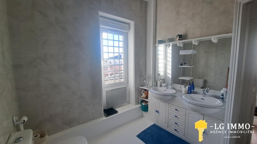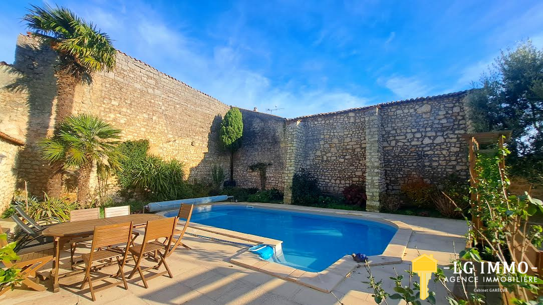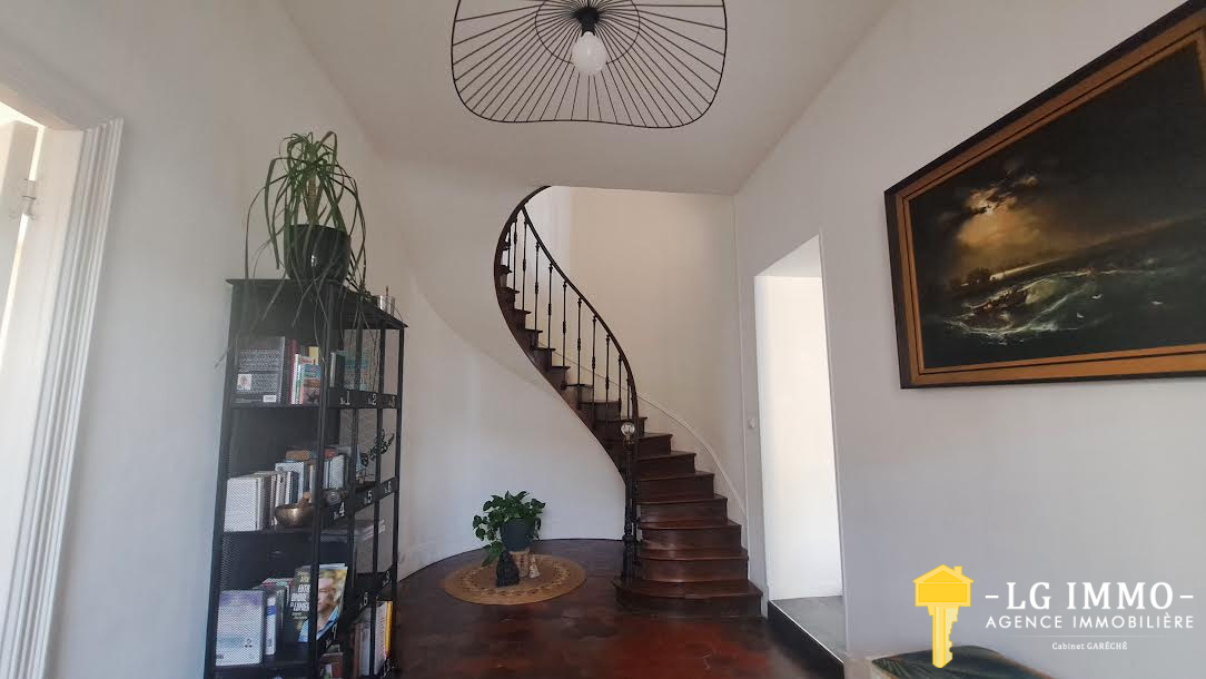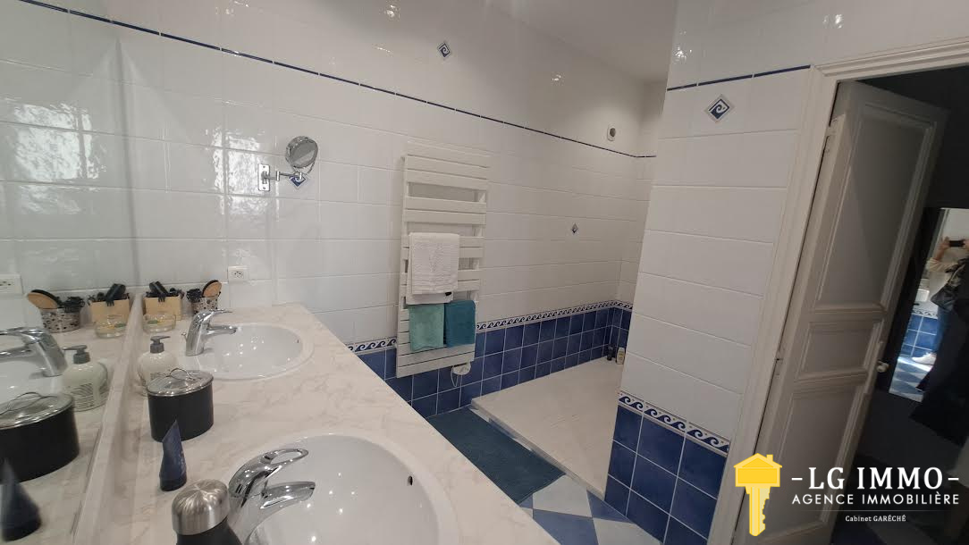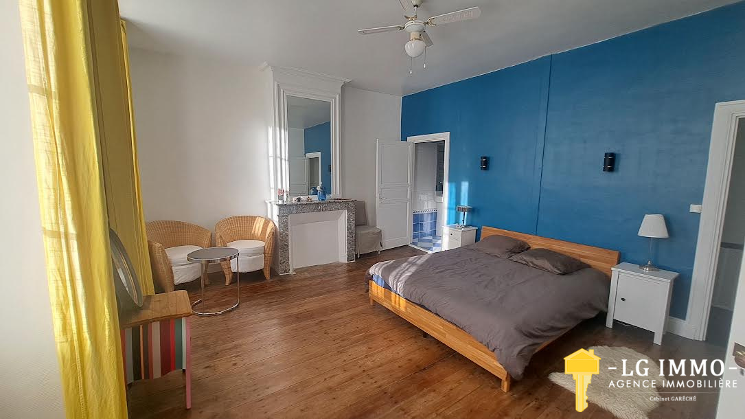 SUPERBE MAISON DE MAÎTRE, située en plein cœur d'un Bourg avec commerces. Elle propose sur près de 250 m² habitables, deux belles entrées, salon et salle à manger avec cheminées, vaste cuisine avec coin repas, arrière-cuisine, 2 pièces de stockage. Au 1er étage : 3 chambres dont une suite parentale avec SdE + dressing, deux salles d'eau/wc, dressing, grenier. Au 2ème étage : une chambre d'enfant avec point d'eau, un beau grenier aménageable de 91 m².Bel espace extérieur entièrement clos de murs et arboré à l'abri des regards avec piscine et petite dépendance idéale pour une cuisine d'été ou atelier., doubles vitrages, volets roulants électriques et abri pour deux voitures ( délégation de mandat )