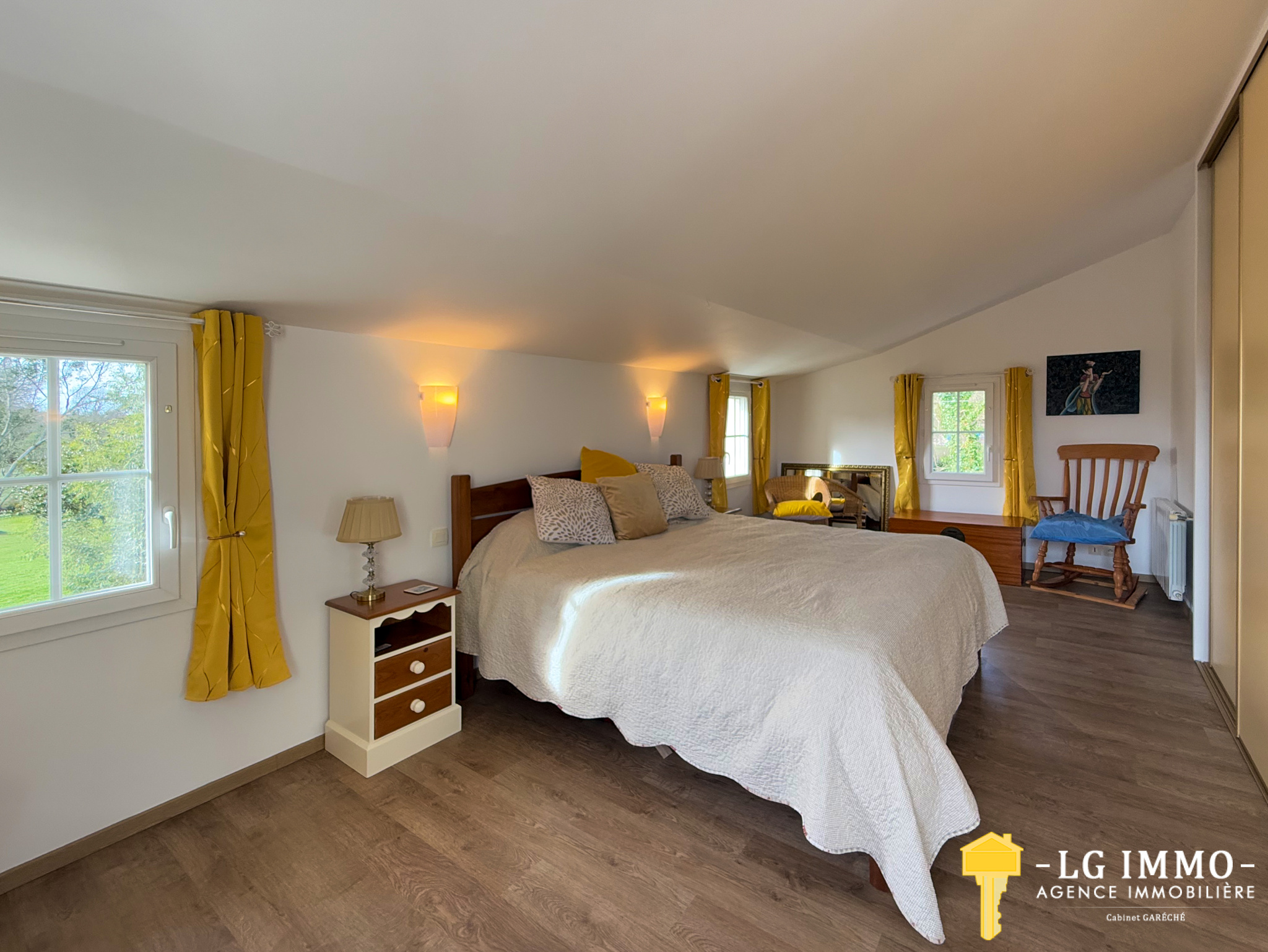 Charme, Nature et Océan... Au cœur de la campagne, sur la petite commune de Meursac et à seulement 30 minutes des plus belles plages de la Côte Atlantique, cette villa de 231 m², récemment rénovée, se dévoile au milieu d’un cadre verdoyant et bucolique de plus de 6301 m². Cette maison offre de magnifiques prestations. Le rez-de-chaussée se compose d’un hall d’entrée, d’un WC indépendant et d’une belle pièce de vie d’environ 50 m². Celle-ci s’organise autour d’une cuisine moderne entièrement équipée, ouverte sur le salon et la salle à manger, avec un accès direct à la terrasse ; équipée de son barbecue et abritée des regards, elle laisse présager de belles soirées d’été conviviales. Un couloir dessert deux chambres et une grande salle de bains moderne avec baignoire, douche, double vasque, WC. L’autre aile de la maison accueille en rez-de-chaussée un hall de près de 16 m² avec accès sur le jardin, une magnifique suite parentale comprenant dressing, salle de bains avec baignoire et douche, double vasque, WC, un salon très cosy de 26 m² avec son poêle à bois et un bureau/buanderie de 32 m².À l’étage, vous trouverez un petit espace bureau sur le palier ainsi qu’une superbe suite avec balcon privatif et sa luxueuse salle d’eau avec douche, double vasque, WC. Chaque espace de vie bénéficie d’une vue sur le jardin, d’une luminosité naturelle généreuse et offre beaux volumes, tout en assurant un excellent niveau de confort et de fonctionnalité. À l’extérieur, un garage atelier de 50 m² avec borne de recharge pour véhicule électrique et deux abris de jardin complètent le bien. Le jardin paysager de 6301 m² entièrement clos est une invitation à la détente. Les fleurs, le bruit du vent dans les arbres, le chant des oiseaux... c’est un véritable havre de paix pour vivre en harmonie avec la nature. Aucun travaux à prévoir, juste les valises à déposer ! Ce cadre de vie idéal est situé à proximité de toutes commodités et à seulement quelques minutes de la côte Royannaise. Le potentiel de cette propriété offre de belles possibilités, que ce soit pour un projet familial ou pour une activité de chambres d’hôtes. Pour plus d’informations ou pour organiser une visite, vous pouvez contacter Florence Prudhon au 06 18 09 24 17 ou Henri Prudhon au 06 19 57 12 17, ou par mail florence.prudhonlgimmo@gmail.com.Les surfaces indiquées sont données à titre indicatif et n’ont aucune valeur contractuelle. Les informations sur les risques auxquels ce bien est exposé sont disponibles sur le site Géorisques. Estimations gratuites