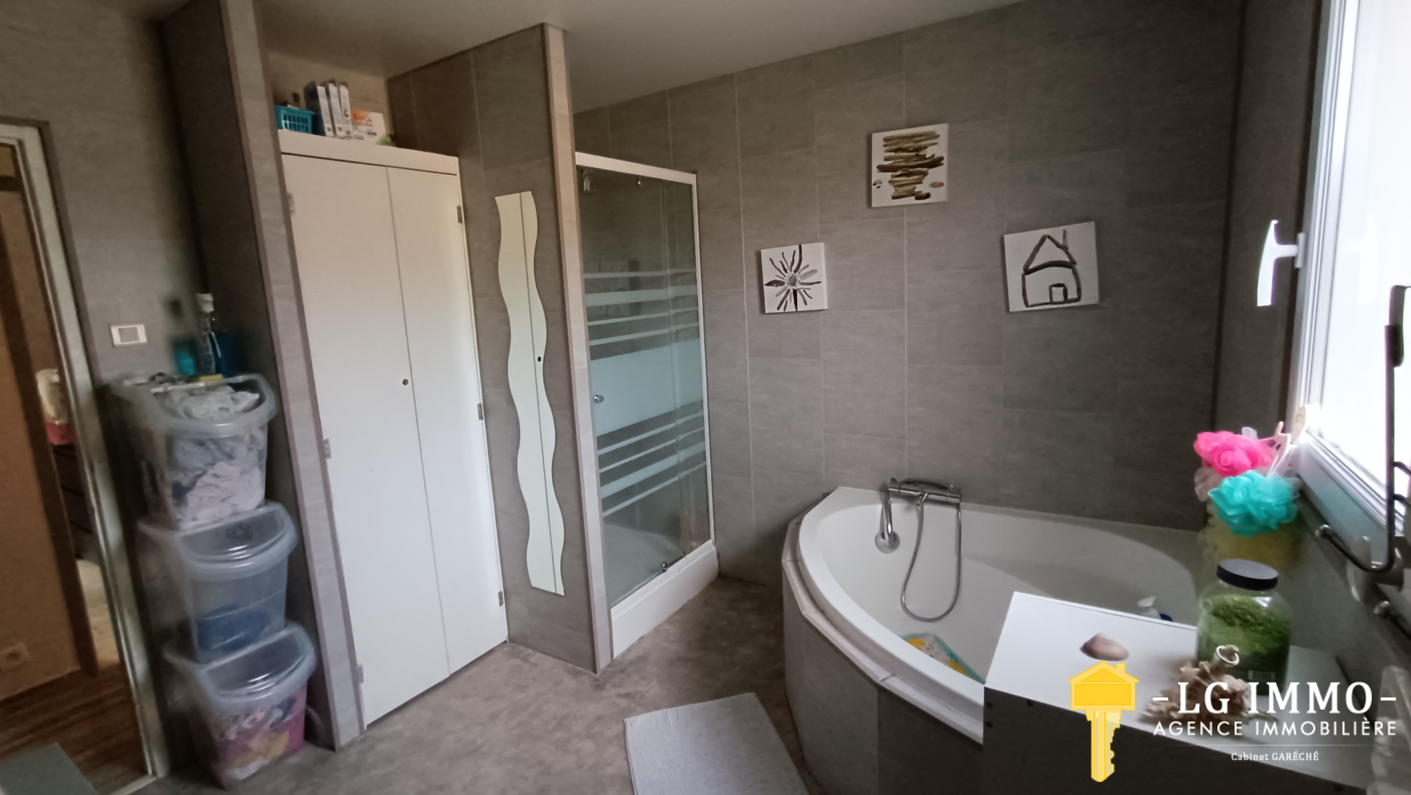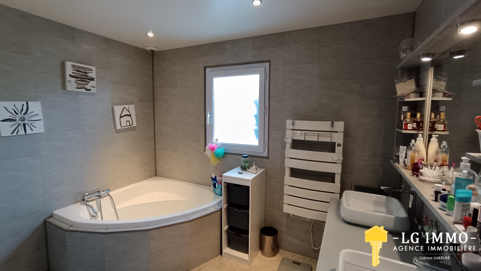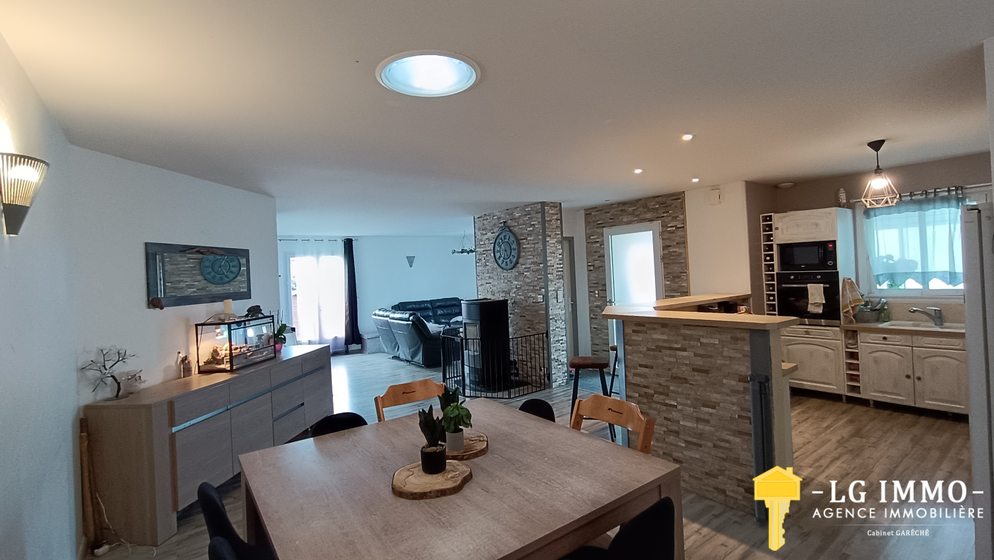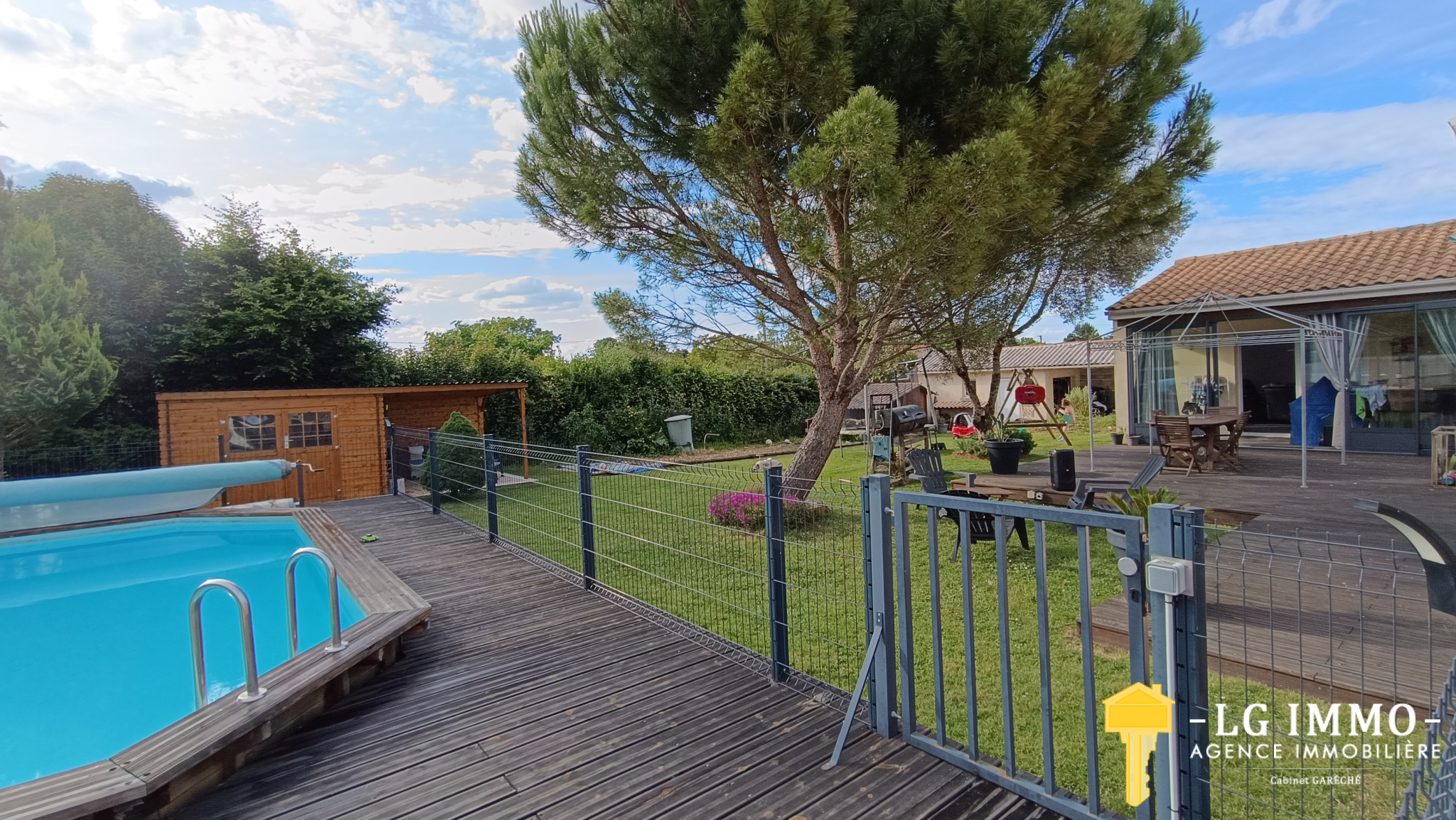 Maison de plain pied et son studio indépendant situé à Bercloux dans le triangle Saintes (25min), St Jean d'Angely (15min), Cognac (20min). Un bel espace de vie (48 m2 cuisine ouverte sur salon/séjour avec poêle a pellet 12Kw), 6 chambres allant de 10 m2 à 14 m2, une salle de bain (9 m2) avec baignoire et douche, une buanderie (4 m2), Deux véranda (12 et 8 m2), terrasse (43 m2 pour profiter entre amis et famille). Un jardin arboré et une piscine semi-entérré chauffée par pompe à chaleur et entièrement sécurisée viennent compléter l'ensemble. Un studio (25 m2) attenant et communiquant avec la maison par la buanderie comprend une pièce (salon/kitchenette), un espace nuit et une salle d'eau avec wc et vous offre la possibilité d'une septième chambre ou un rapport locatif saisonnier. Assainissement individuel, menuiseries en double vitrage, chauffage par convecteur électrique et poêle à pellet, chauffe eau thermodynamique, panneaux solaires (9Kw). Pour toutes demandes de renseignements appelez Stéphane OUZAI au 06 69 47 74 05 ou stephane.ouzailgimmo@gmail.com Estimations gratuites