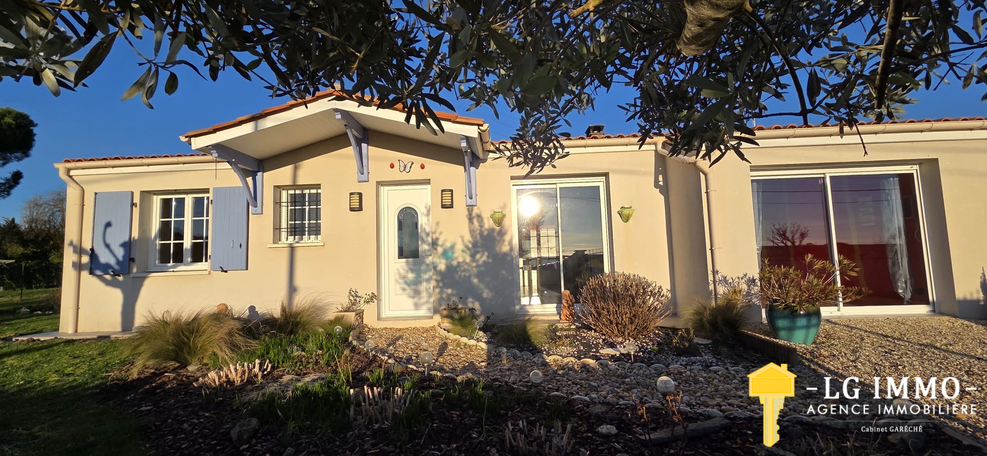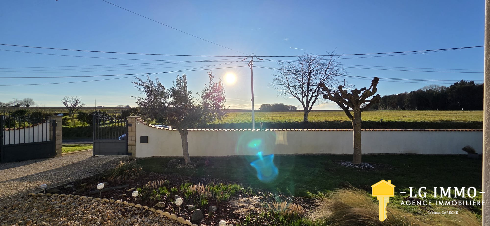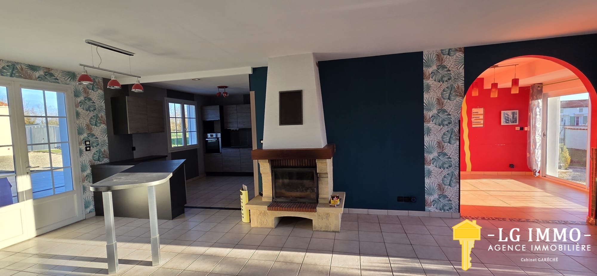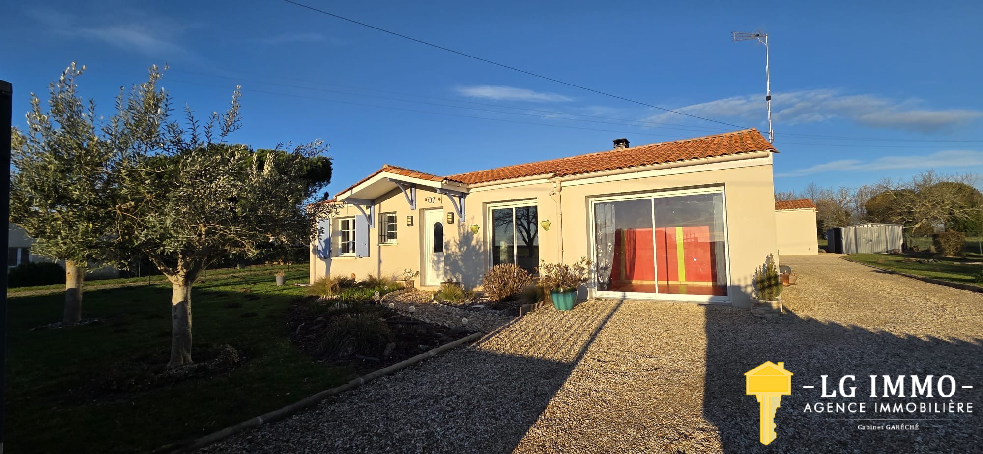 Uniquement dans votre agence - LG IMMO - Cabinet GARÉCHÉ, opportunité À SAISIR, maison de plain-pied de 100 m2, chauffée par une cheminée avec système de ventilation d'air chaud diffusé dans chaque pièce, comprenant un cellier, une pièce de vie lumineuse de 53 m2 avec cuisine aménagée et équipée et un couloir desservant trois chambres dont 2 avec placard ainsi qu’une salle d’eau rénovée avec douche à l’italienne, sèche-serviettes et double vasque et un WC indépendant. Un garage non attenant de 40m2 avec mezzanine et une terrasse de 50m2 environ complètent ce bien, implanté sur une parcelle close de 1405 m2 disposant de 2 entrées. Les ouvertures sont en PVC double vitrage et aucun travaux n'est à prévoir. Ce bien se situe à 2000m seulement du bourg de Saint-Fort-sur-Gironde et de ses commerces, à seulement 25 km des plages et 1h15 de Bordeaux.
