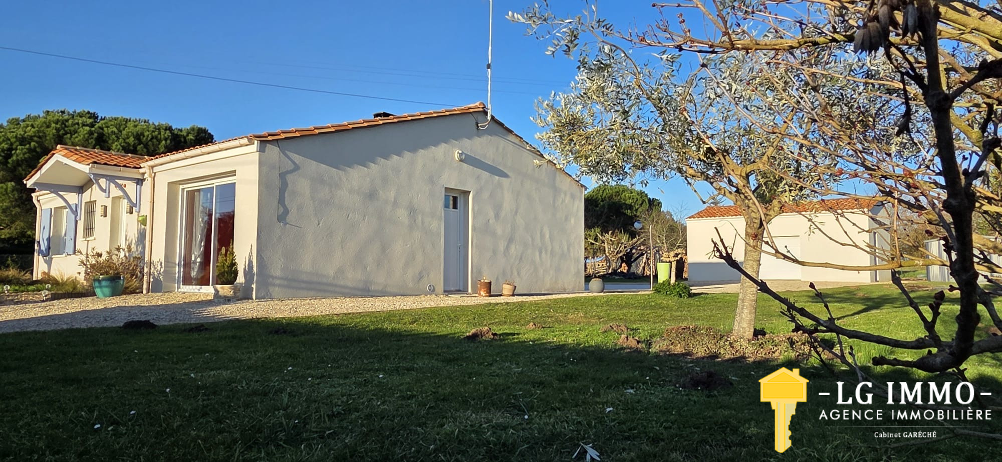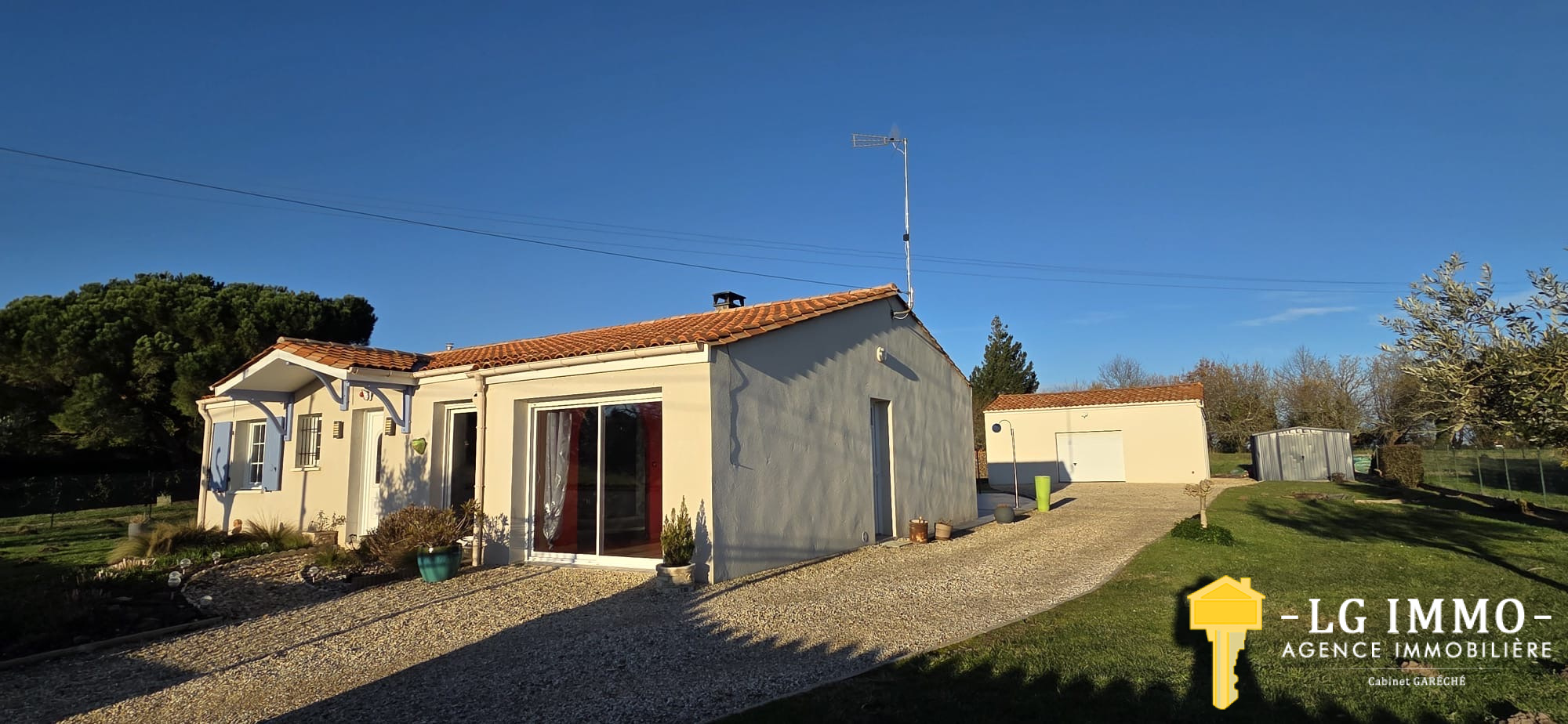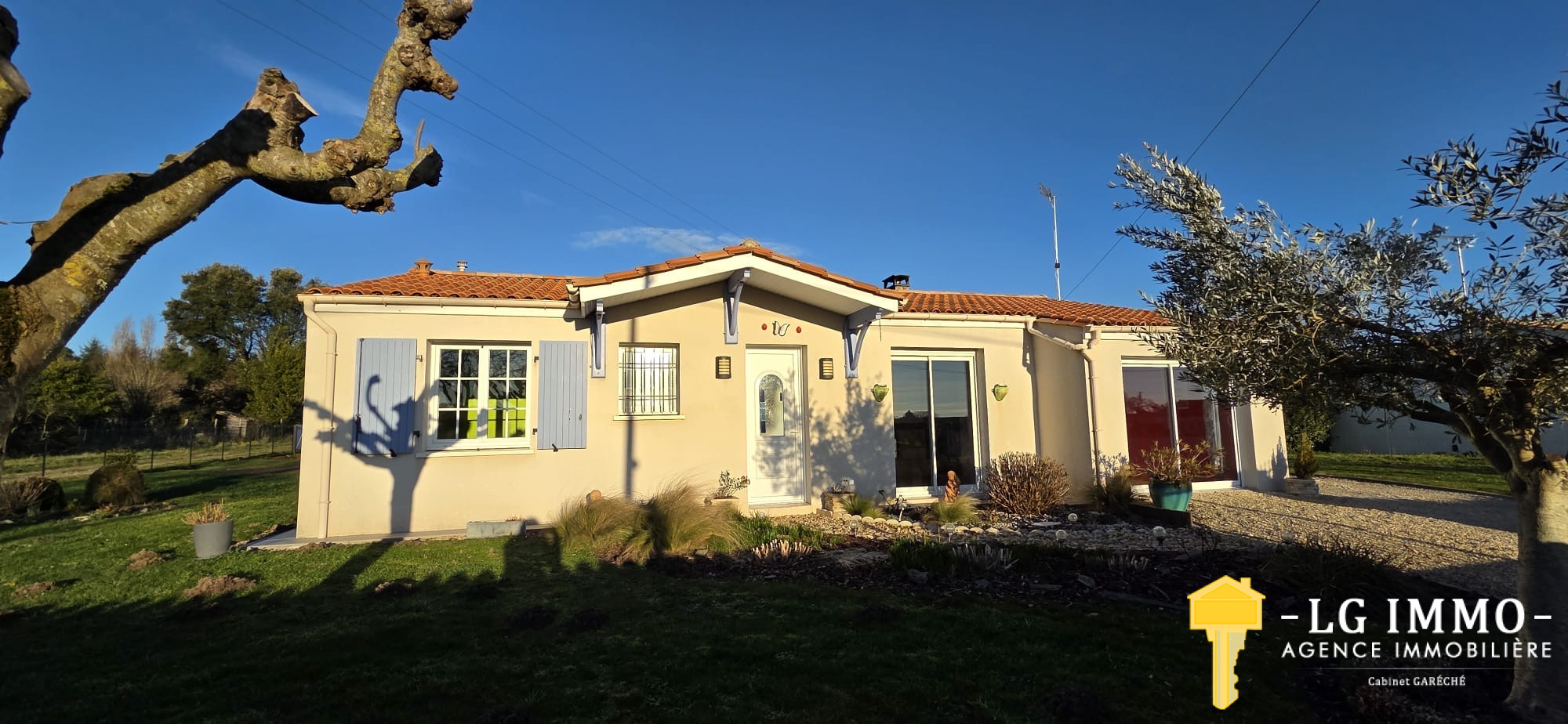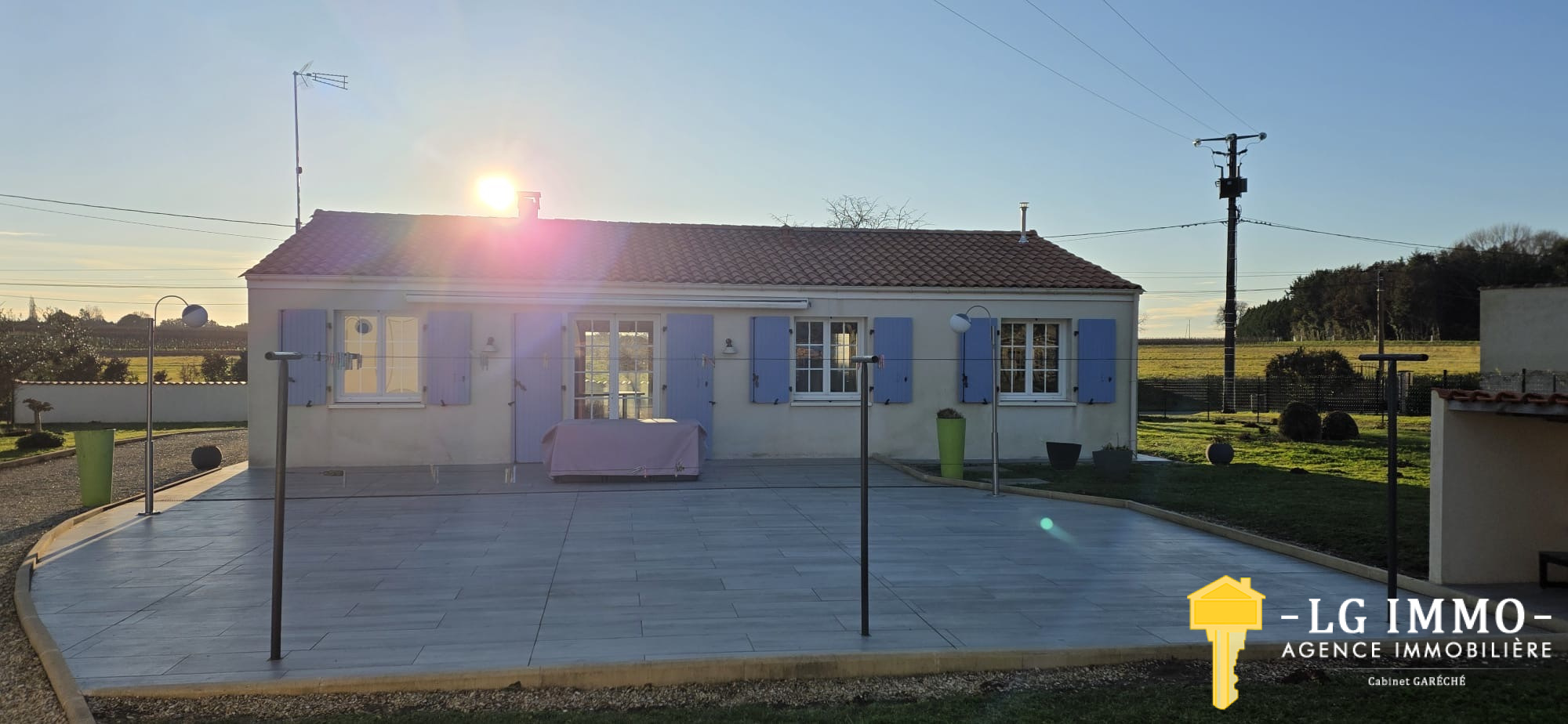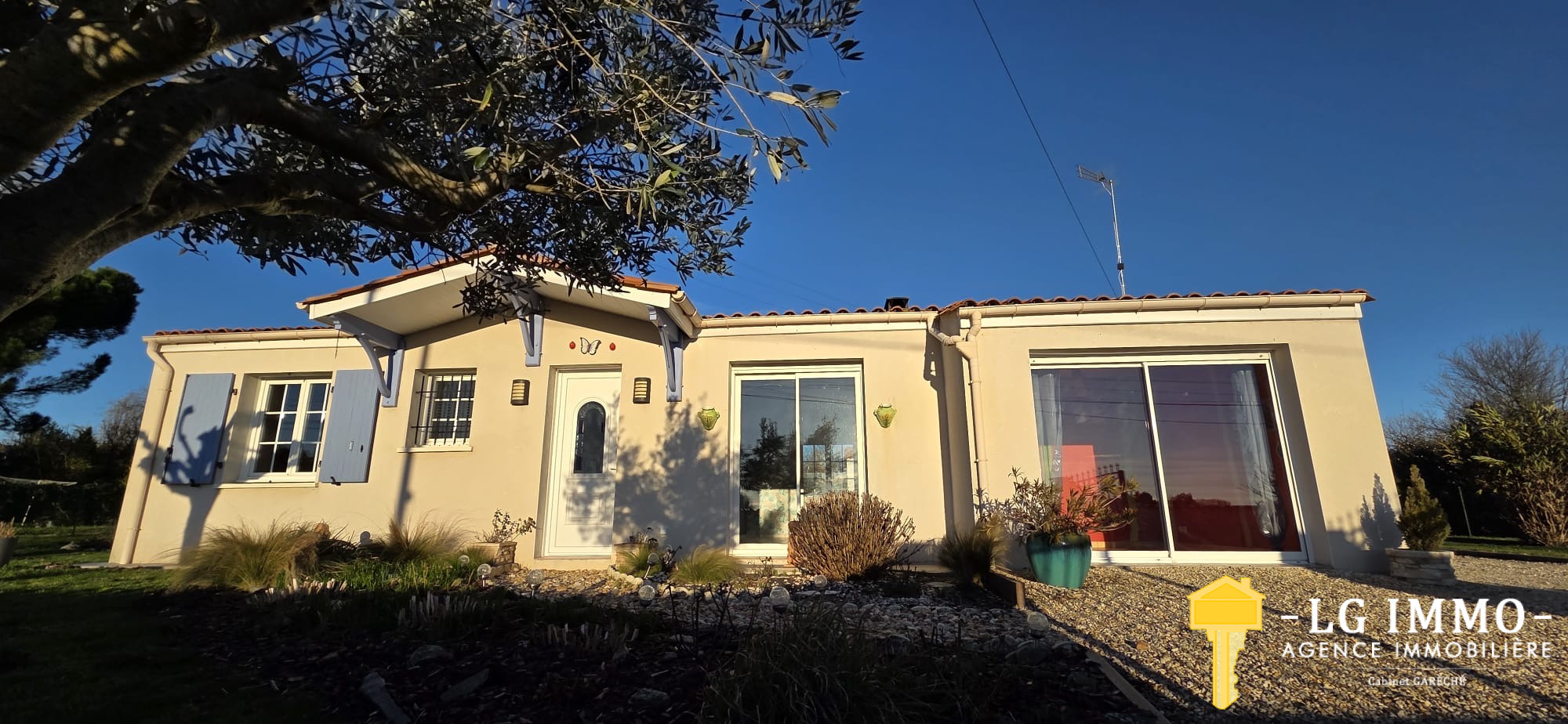 Uniquement dans votre agence - LG IMMO - Cabinet GARÉCHÉ, opportunité À SAISIR, maison de plain-pied de 100 m2, chauffée par une cheminée avec système de ventilation d'air chaud diffusé dans chaque pièce, comprenant un cellier, une pièce de vie lumineuse de 53 m2 avec cuisine aménagée et équipée et un couloir desservant trois chambres dont 2 avec placard ainsi qu’une salle d’eau rénovée avec douche à l’italienne, sèche-serviettes et double vasque et un WC indépendant. Un garage non attenant de 40m2 avec mezzanine et une terrasse de 50m2 environ complètent ce bien, implanté sur une parcelle close de 1405 m2 disposant de 2 entrées. Les ouvertures sont en PVC double vitrage et aucun travaux n'est à prévoir. Ce bien se situe à 2000m seulement du bourg de Saint-Fort-sur-Gironde et de ses commerces, à seulement 25 km des plages et 1h15 de Bordeaux.