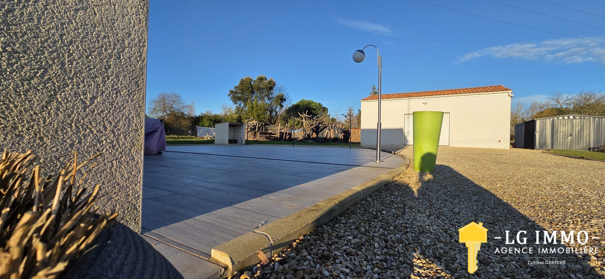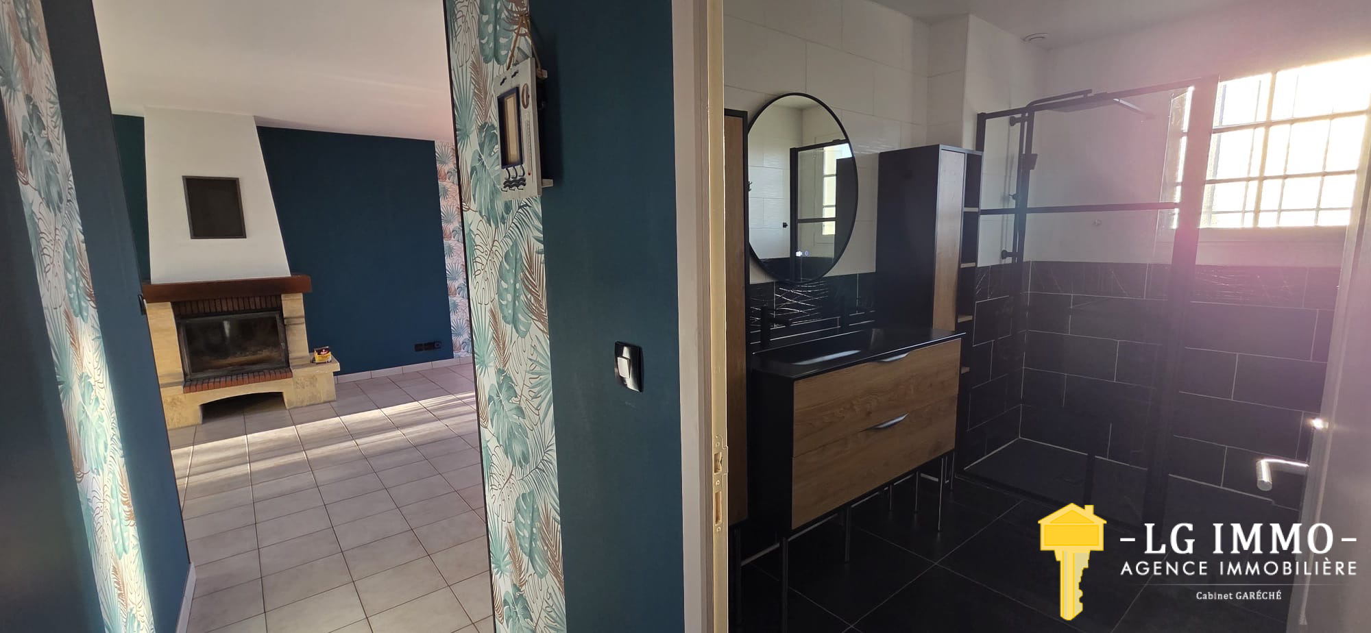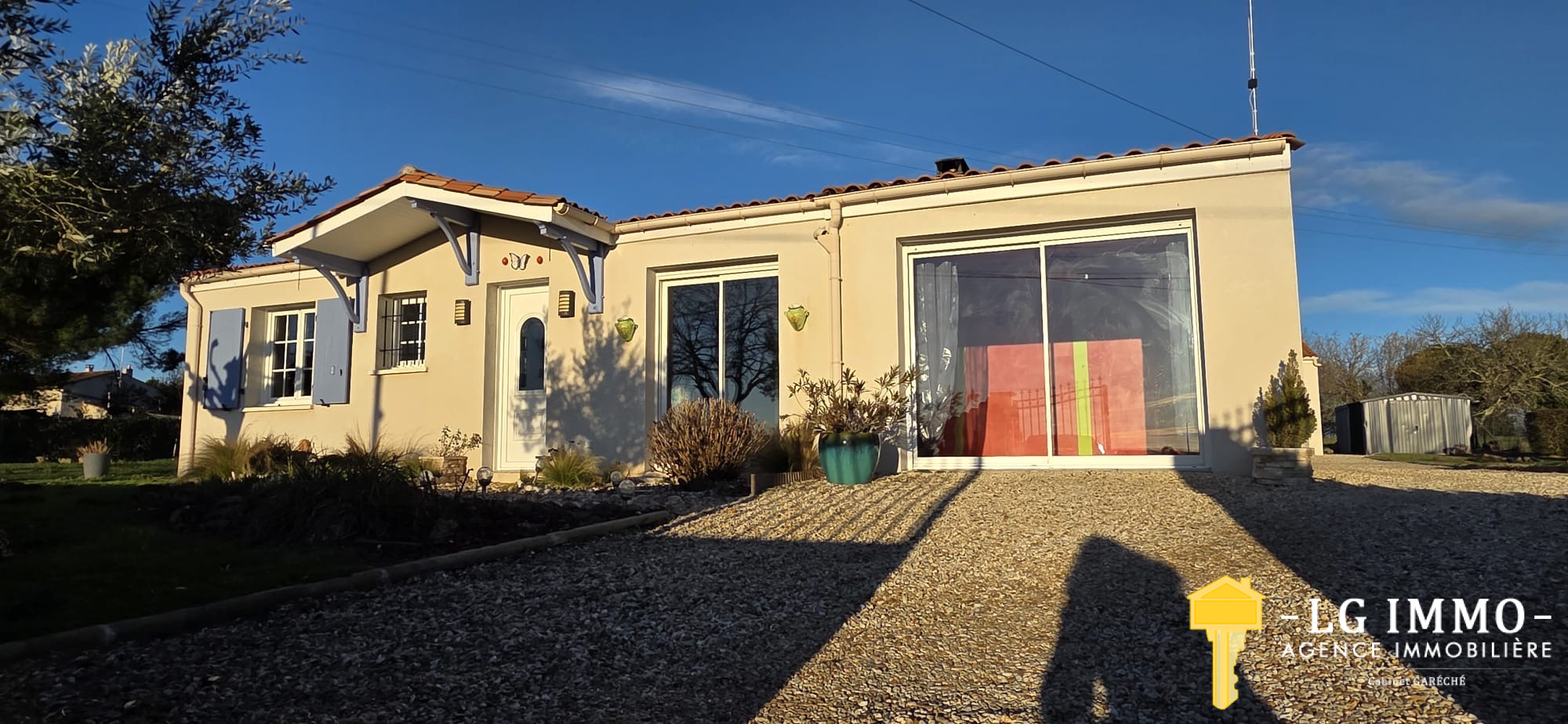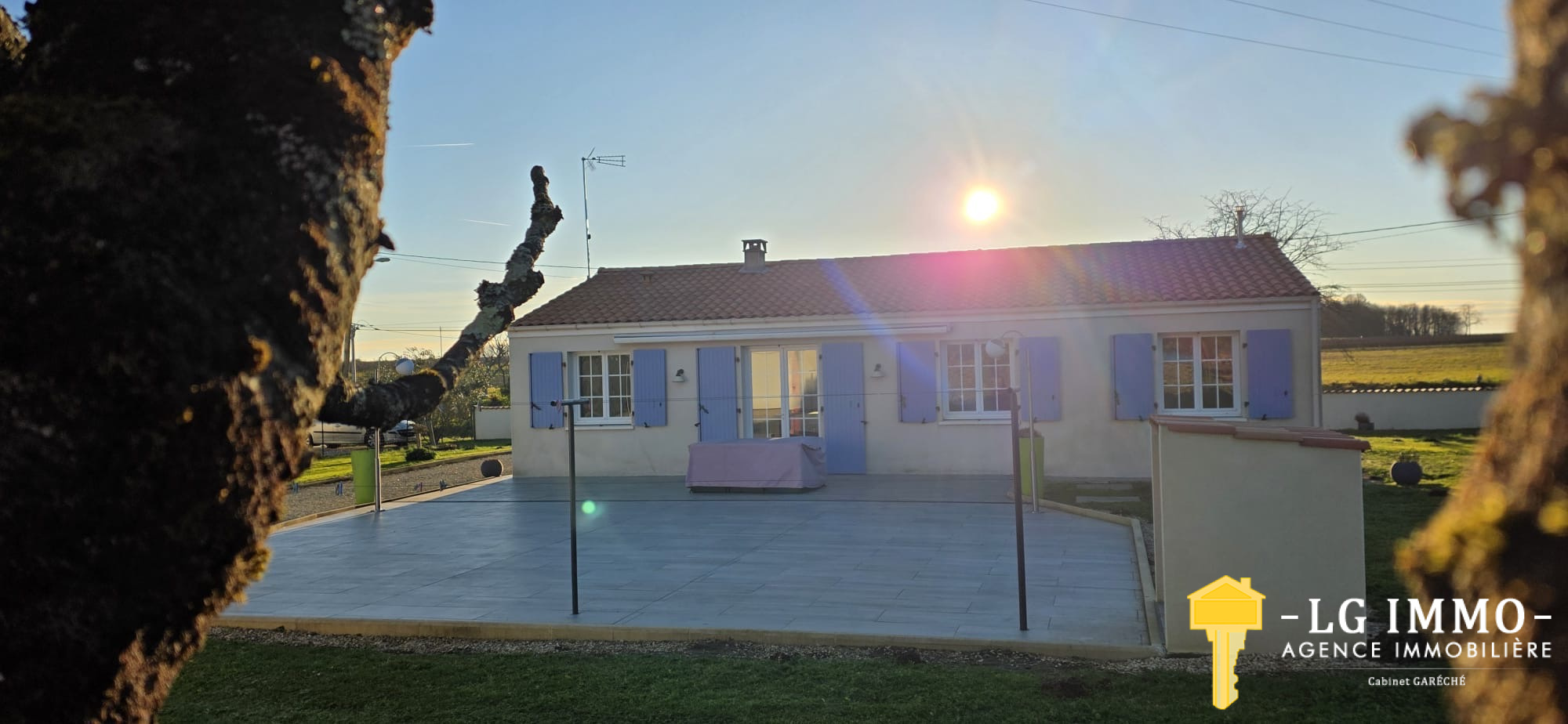 Uniquement dans votre agence - LG IMMO - Cabinet GARÉCHÉ, opportunité À SAISIR, maison de plain-pied de 100 m2, chauffée par une cheminée avec système de ventilation d'air chaud diffusé dans chaque pièce, comprenant un cellier, une pièce de vie lumineuse de 53 m2 avec cuisine aménagée et équipée et un couloir desservant trois chambres dont 2 avec placard ainsi qu’une salle d’eau rénovée avec douche à l’italienne, sèche-serviettes et double vasque et un WC indépendant. Un garage non attenant de 40m2 avec mezzanine et une terrasse de 50m2 environ complètent ce bien, implanté sur une parcelle close de 1405 m2 disposant de 2 entrées. Les ouvertures sont en PVC double vitrage et aucun travaux n'est à prévoir. Ce bien se situe à 2000m seulement du bourg de Saint-Fort-sur-Gironde et de ses commerces, à seulement 25 km des plages et 1h15 de Bordeaux.