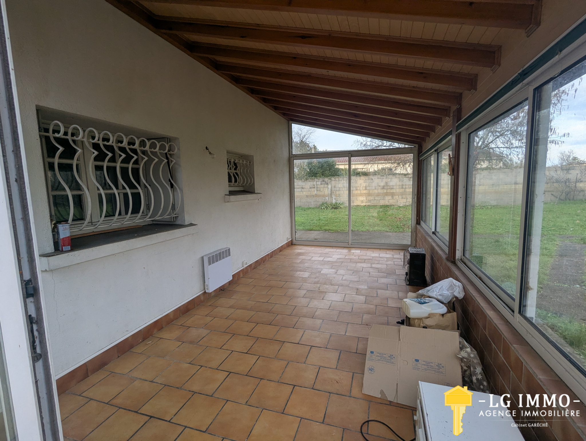 L'agence - LG IMMO - cabinet Garéché vous propose, au coeur de Jonzac cette maison sur sous sol comprenant au premier niveau : une entrée, un séjour de 27.60 m2, une cuisine indépendante équipée de 12 m2. Un couloir mène à 3 chambres de 10.70 m2, 11.10 m2 et 10.60 m2 , une salle de bains avec baignoire et douche de 5.90 m2 ainsi qu'un wc séparé complètent ce niveau. A l'étage inférieur on trouve un séjour de 20.30 m2, une cuisine de 9.80 m2, une chambre de 9.45 m2 ainsi qu'un wc. Une pièce de 14.15 m2 avec une douche et un lavabo ainsi qu'un garage de 26 m2 terminent ce niveau. A l'extérieur se trouvent une véranda de 15.80 m2, un garage indépendant de 66 m2 pouvant accueillir un camping car sur un jardin de 1300 m2 entièrement clos et arboré.