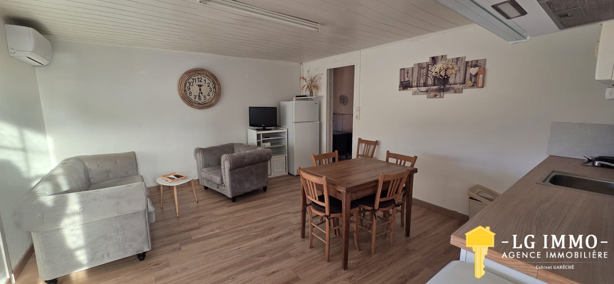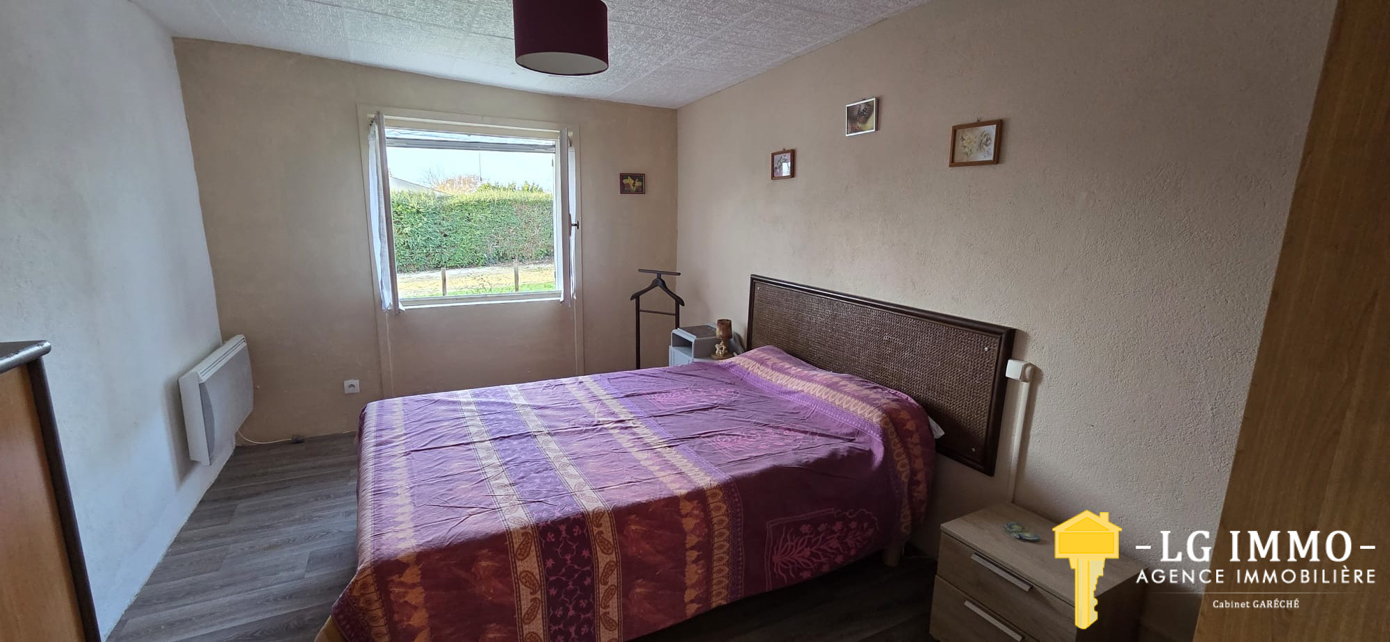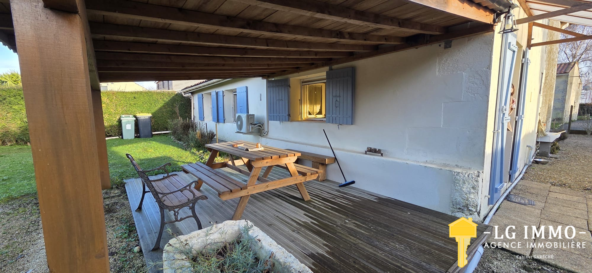 L’agence - LG IMMO - Cabinet Garéché vous propose en exclusivité cette location annuelle non meublée, pour un bail de 3 ans. Cette maison mitoyenne d’un côté, entièrement de plain-pied, d’une superficie d’environ 55 m², se compose d’une pièce de vie avec cuisine de 19,30 m², d’un couloir desservant deux chambres d’environ 11,60 m² chacune, une salle d’eau de 2,90 m² et un WC indépendant. Un grand garage attenant de 56 m² complète le bien. À l’avant de la maison, sur un terrain d’environ 460 m², vous profiterez d’une terrasse en bois couverte de 13,40 m². Le chauffage est assuré par une pompe à chaleur et des convecteurs électriques, et les menuiseries sont en bois double vitrage. Le loyer est de 600 € par mois charges comprises (dont 5 € pour la taxe d’enlèvement des ordures ménagères), le dépôt de garantie s’élève à 595 € et les honoraires d’agence sont de 345,45 €. Pour tout renseignement, contactez votre agence LG IMMO au 05 46 97 27 11 ou par mail à cabinet-gareche@lgimmo.net.