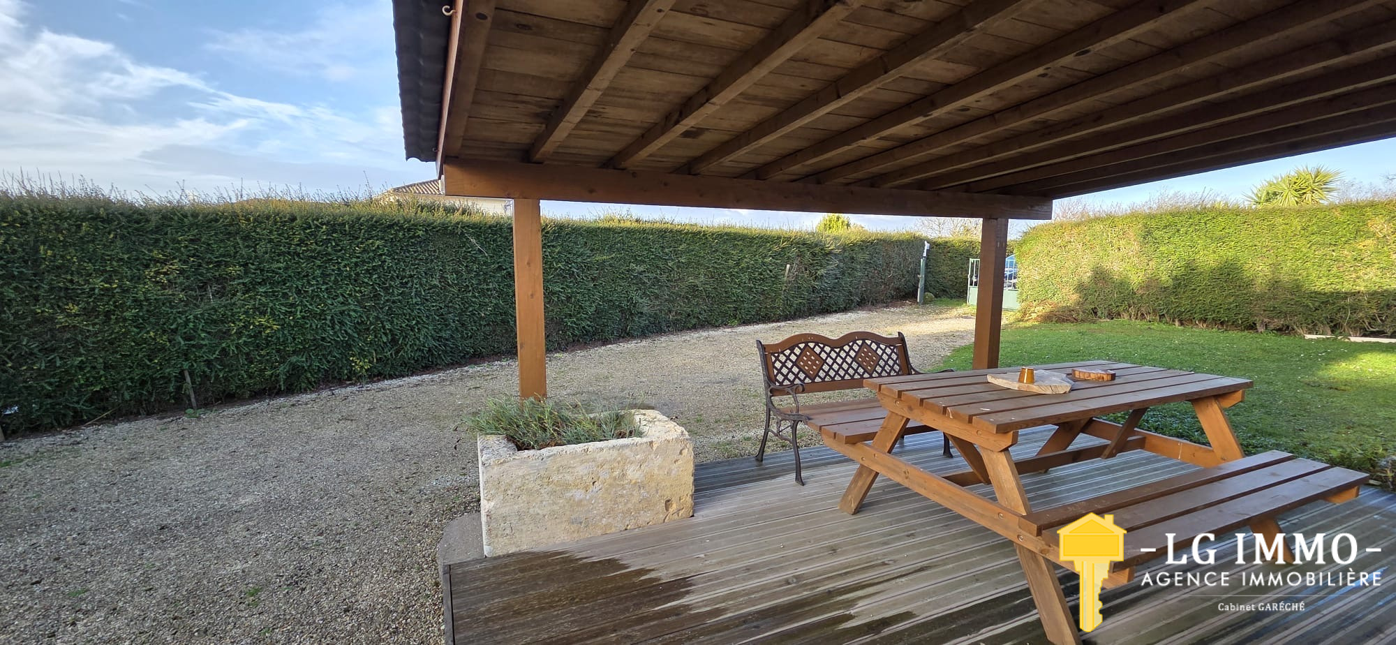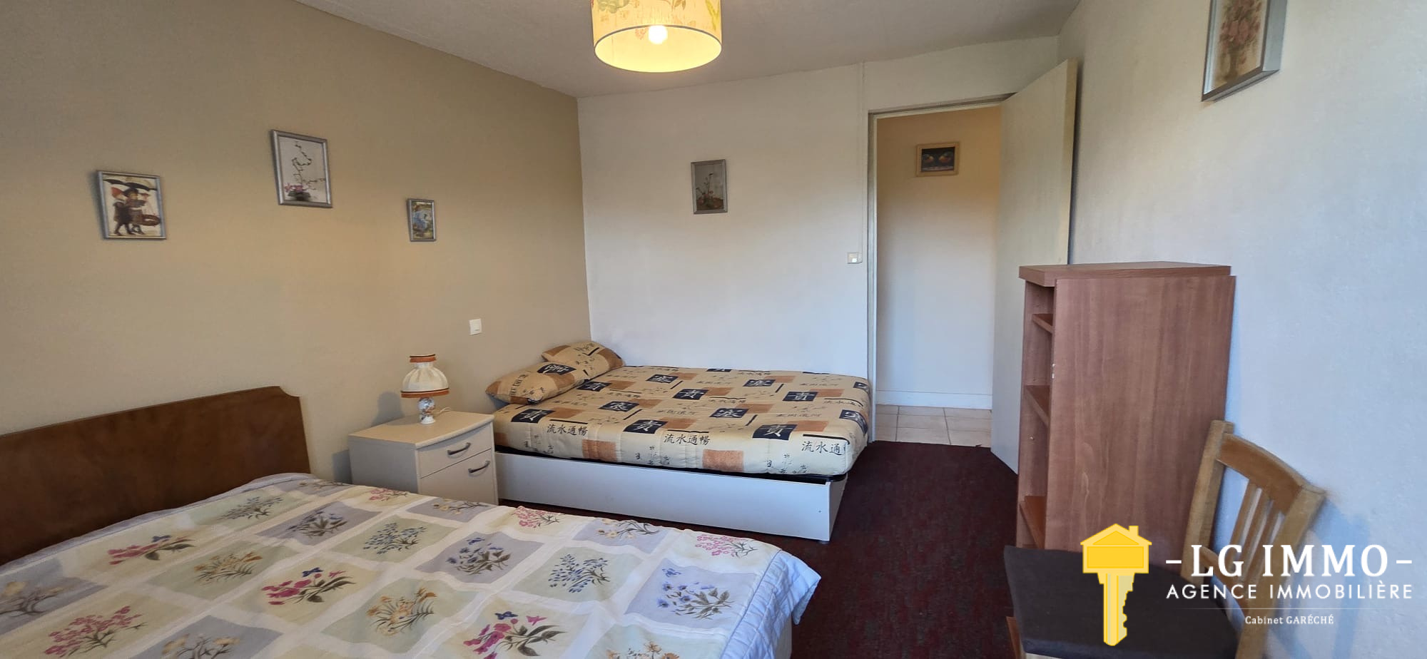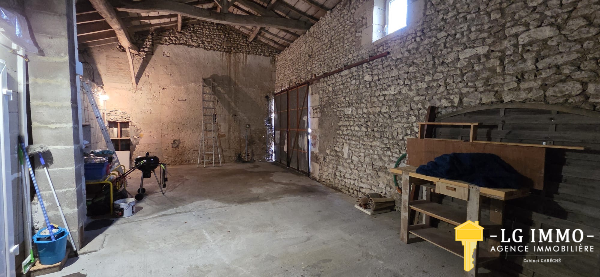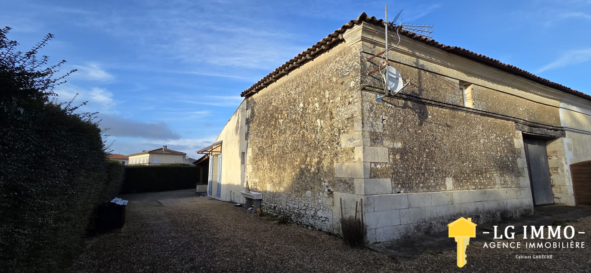 L’agence - LG IMMO - Cabinet Garéché vous propose en exclusivité cette location annuelle non meublée, pour un bail de 3 ans. Cette maison mitoyenne d’un côté, entièrement de plain-pied, d’une superficie d’environ 55 m², se compose d’une pièce de vie avec cuisine de 19,30 m², d’un couloir desservant deux chambres d’environ 11,60 m² chacune, une salle d’eau de 2,90 m² et un WC indépendant. Un grand garage attenant de 56 m² complète le bien. À l’avant de la maison, sur un terrain d’environ 460 m², vous profiterez d’une terrasse en bois couverte de 13,40 m². Le chauffage est assuré par une pompe à chaleur et des convecteurs électriques, et les menuiseries sont en bois double vitrage. Le loyer est de 600 € par mois charges comprises (dont 5 € pour la taxe d’enlèvement des ordures ménagères), le dépôt de garantie s’élève à 595 € et les honoraires d’agence sont de 345,45 €. Pour tout renseignement, contactez votre agence LG IMMO au 05 46 97 27 11 ou par mail à cabinet-gareche@lgimmo.net.