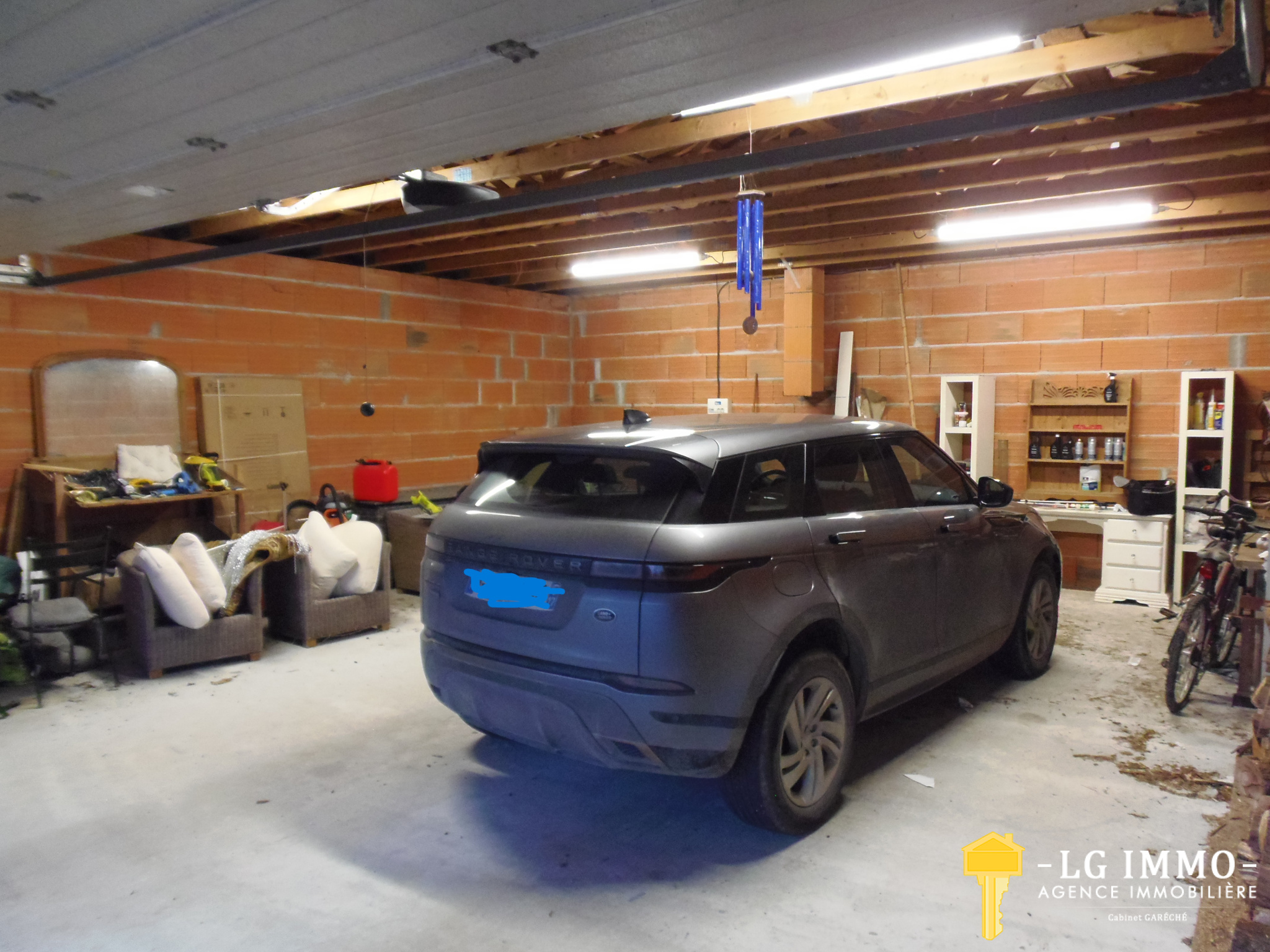 Un immense garage de 77 m² abrite la pompe à chaleur air-eau et offre un espace de stockage pour le bois de chauffage et tout le matériel de jardinage.