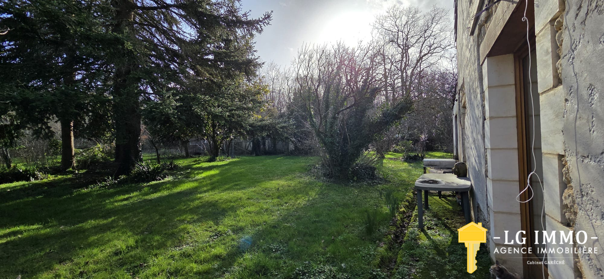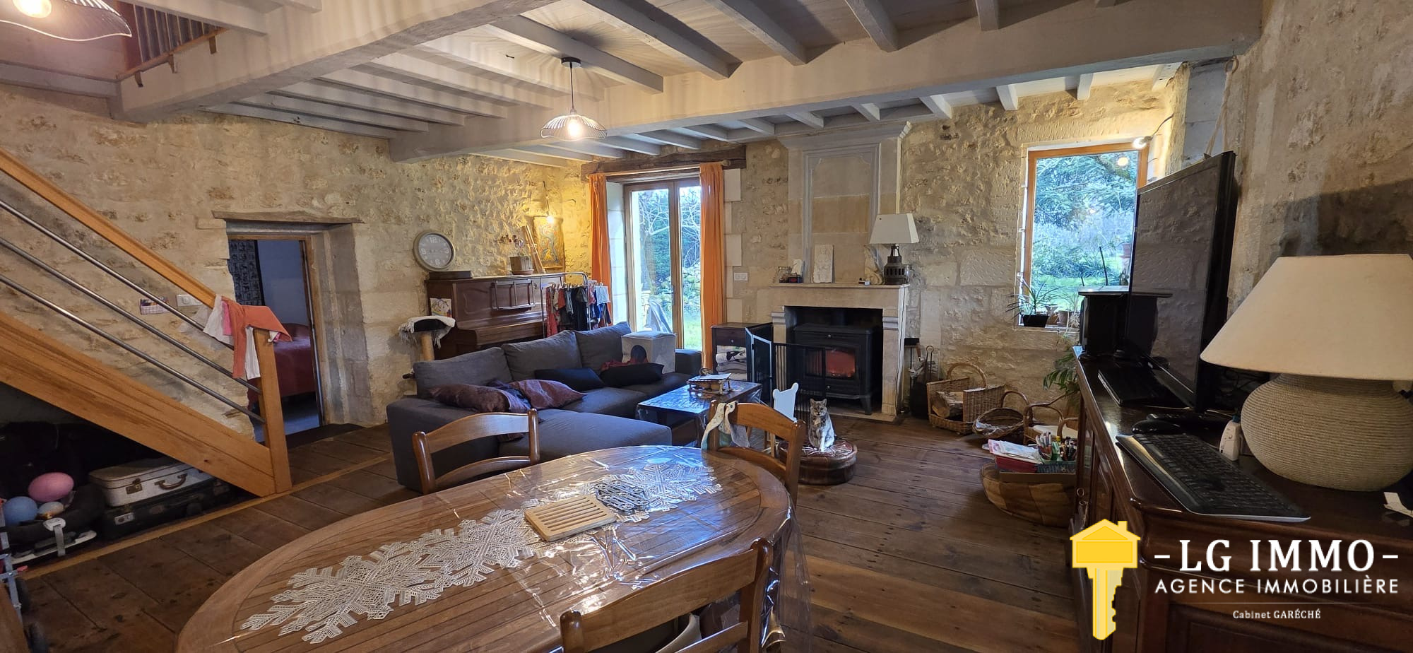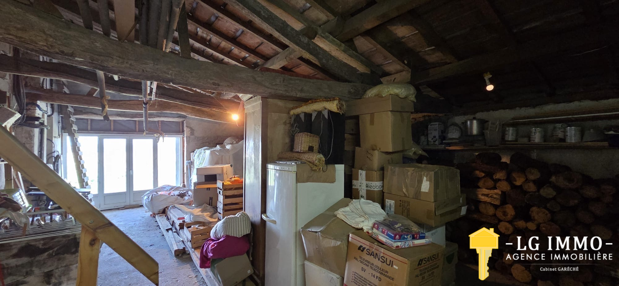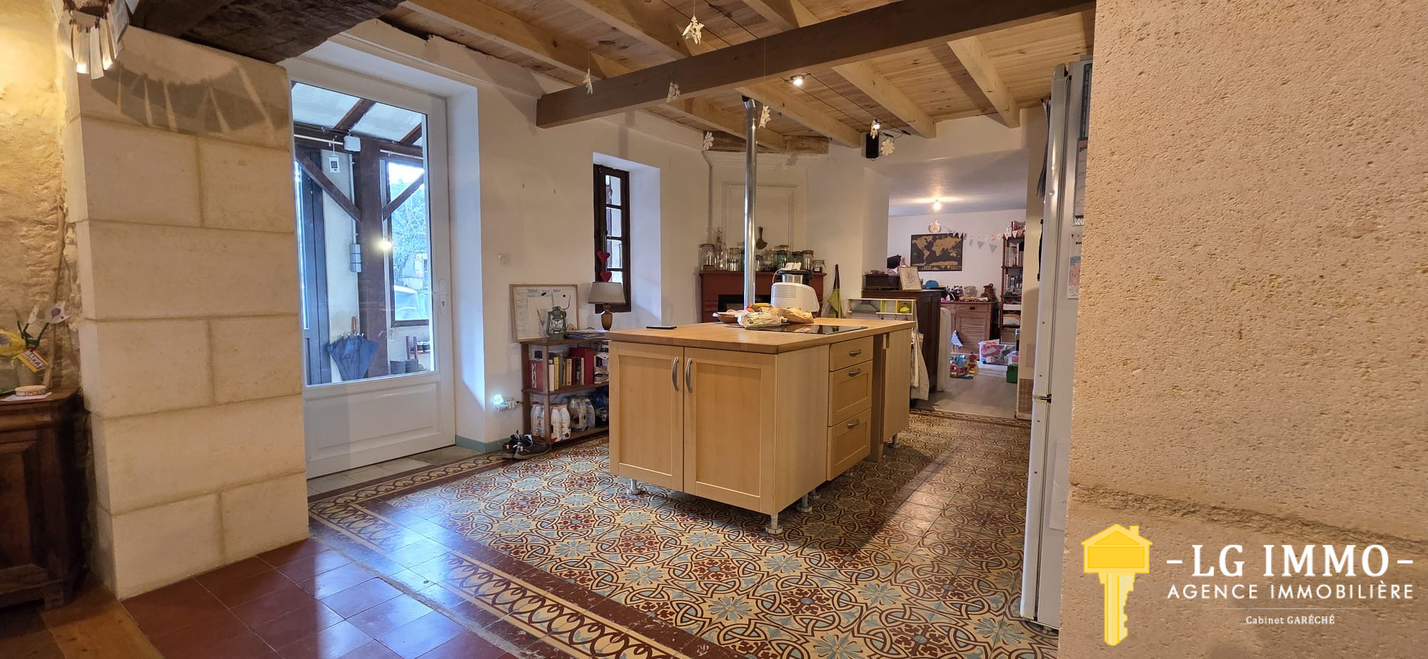 L'agence - LG IMMO - Cabinet Garéché, vous propose d'acquérir cette maison charentaise, située dans la campagne de Champagnolles, au coeur de la nature, à seulement 2kms du bourg et 6 kms de Gémozac et de ses commerces. D'une superficie habitable de 135 m² sur 2 niveaux, elle dispose d'une dépendance attenante de 78 m2 au sol + 45 m2 à l'étage permettant aisément un agrandissement de la maison ou bien la création d'un second logement. Vous entrerez dans la maison part une véranda de 25 m2 servant de vestibule et donnant accès à la pièce de vie de 61 m2 composée d'une cuisine aménagée avec ilôt central, d'un salon/salle à manger où vous sentirez la chaleur dégagée par l'insert et le charme authentique des murs en pierres, et un espace utilisé comme salle de jeux mais laissant libre cour à l'aménagement qui vous convient. Le rez-de-chaussée propose également 2 chambres, une salle d'eau et un WC. À l'étage, un palier de 12 m² en partie mansardé dessert une troisième chambre d'environ 13 m2. Un peu à l'écart de la maison, au bout d'une allée, un hangar de 100 m2 dont 37 m2 fermés complètent l'ensemble (hauteur suffisante pour abriter un camping car par exemple). Les atouts principaux de ce bien sont notamment sa couverture, refaite en 2022 et sa charpente en très bon état, son plancher neuf, la mise en valeur des caractéristiques typiques des maisons charentaises comme les murs en pierres du séjour remis à neuf et la cheminée et son insert totalement refaits, son escalier neuf, l'isolation refaite dans la plupart des pièces... Quant aux travaux nécessaires, il reste quelques ouvertures en bois simple vitrage et un assainissement à prévoir si vous n'êtes pas adeptes des toilettes sèches actuellement en service. Une fosse étanche se situe sous les toilettes et permettrait de les raccorder facilement en incluant une mise aux normes. Si ce bien vous intrigue et si vous recherchez un havre de paix entouré de champs et forêts, n'attendez plus pour contacter votre agence LG IMMO au 05 46 97 27 11 ou à cabinet-gareche@lgimmo.net pour plus d'informations. Pour la vente, l'achat, une estimation, consultez-nous sur les secteurs de Mortagne-sur-Gironde, Cozes, Gémozac, Pons, Saint-Fort-sur-Gironde, Saint-Germain-du-Seudre, Lorignac, Jazennes...