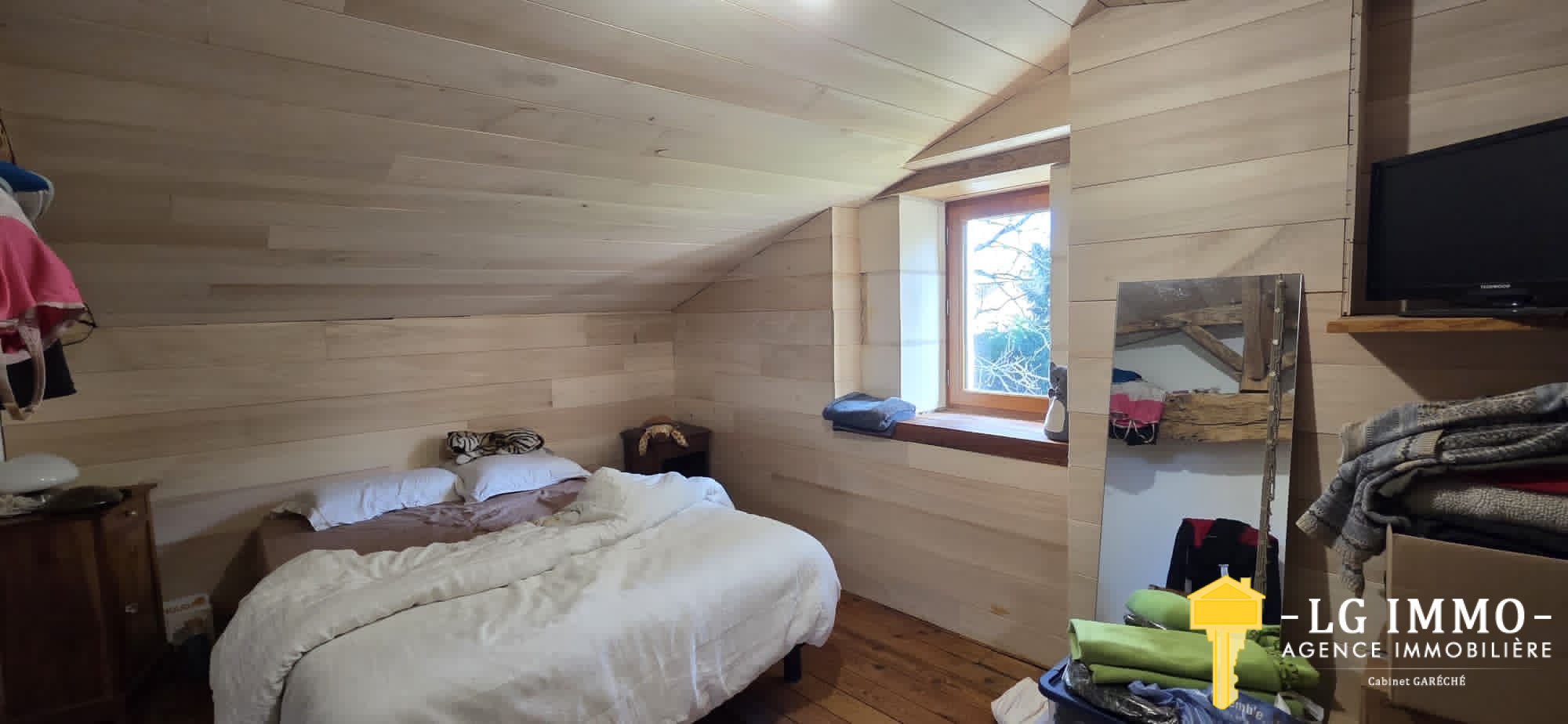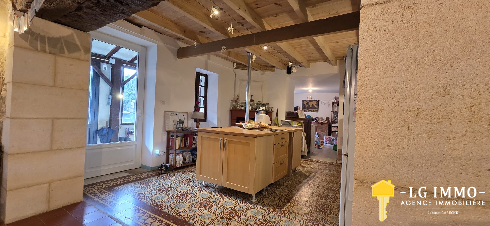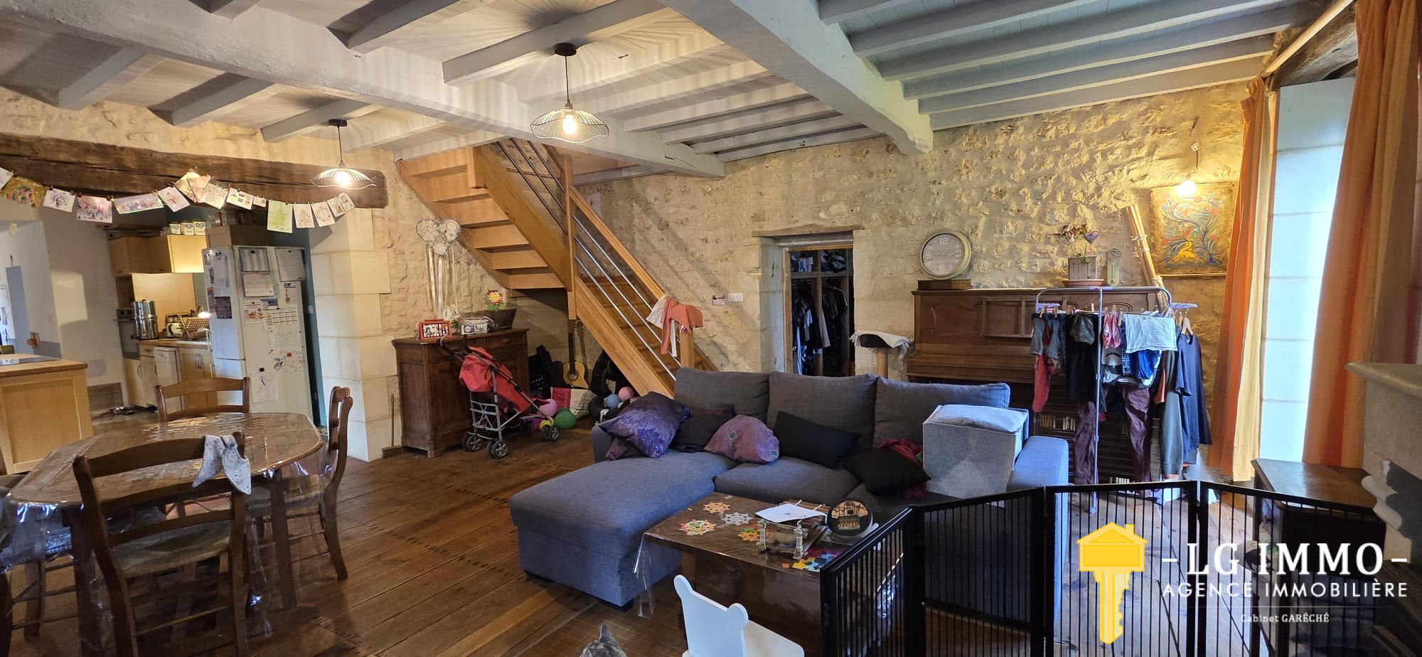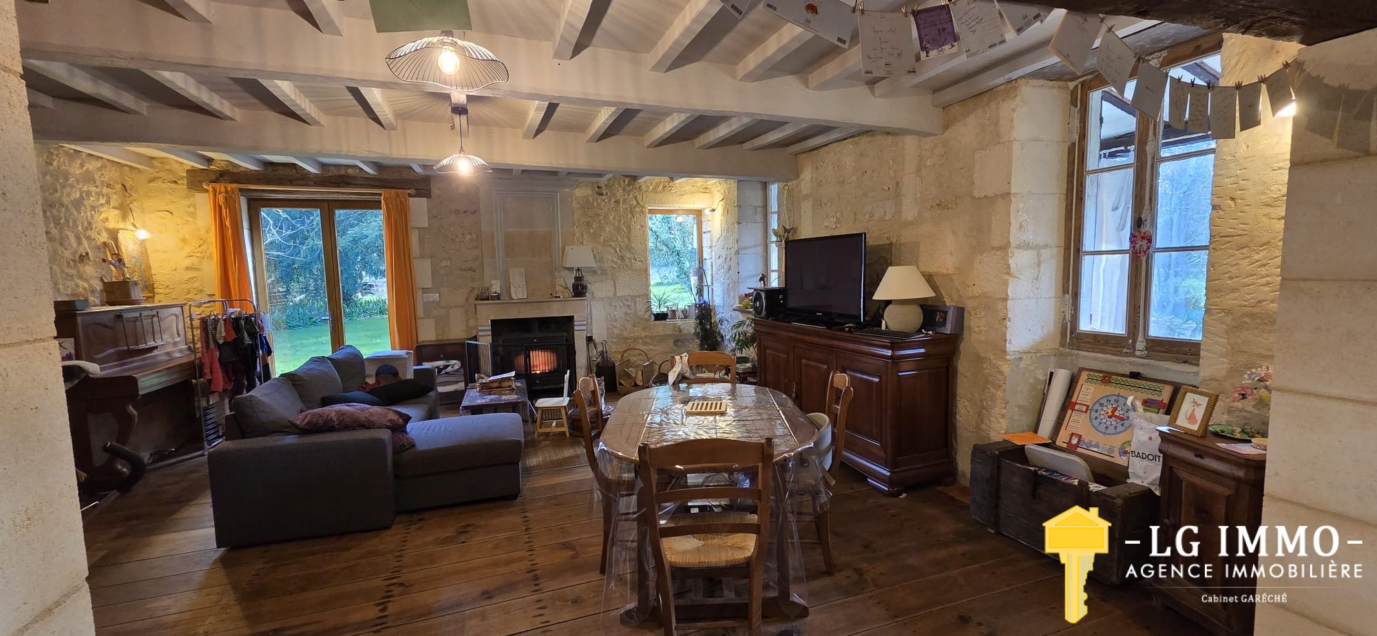 L'agence - LG IMMO - Cabinet Garéché, vous propose d'acquérir cette maison charentaise, située dans la campagne de Champagnolles, au coeur de la nature, à seulement 2kms du bourg et 6 kms de Gémozac et de ses commerces. D'une superficie habitable de 135 m² sur 2 niveaux, elle dispose d'une dépendance attenante de 78 m2 au sol + 45 m2 à l'étage permettant aisément un agrandissement de la maison ou bien la création d'un second logement. Vous entrerez dans la maison part une véranda de 25 m2 servant de vestibule et donnant accès à la pièce de vie de 61 m2 composée d'une cuisine aménagée avec ilôt central, d'un salon/salle à manger où vous sentirez la chaleur dégagée par l'insert et le charme authentique des murs en pierres, et un espace utilisé comme salle de jeux mais laissant libre cour à l'aménagement qui vous convient. Le rez-de-chaussée propose également 2 chambres, une salle d'eau et un WC. À l'étage, un palier de 12 m² en partie mansardé dessert une troisième chambre d'environ 13 m2. Un peu à l'écart de la maison, au bout d'une allée, un hangar de 100 m2 dont 37 m2 fermés complètent l'ensemble (hauteur suffisante pour abriter un camping car par exemple). Les atouts principaux de ce bien sont notamment sa couverture, refaite en 2022 et sa charpente en très bon état, son plancher neuf, la mise en valeur des caractéristiques typiques des maisons charentaises comme les murs en pierres du séjour remis à neuf et la cheminée et son insert totalement refaits, son escalier neuf, l'isolation refaite dans la plupart des pièces... Quant aux travaux nécessaires, il reste quelques ouvertures en bois simple vitrage et un assainissement à prévoir si vous n'êtes pas adeptes des toilettes sèches actuellement en service. Une fosse étanche se situe sous les toilettes et permettrait de les raccorder facilement en incluant une mise aux normes. Si ce bien vous intrigue et si vous recherchez un havre de paix entouré de champs et forêts, n'attendez plus pour contacter votre agence LG IMMO au 05 46 97 27 11 ou à cabinet-gareche@lgimmo.net pour plus d'informations. Pour la vente, l'achat, une estimation, consultez-nous sur les secteurs de Mortagne-sur-Gironde, Cozes, Gémozac, Pons, Saint-Fort-sur-Gironde, Saint-Germain-du-Seudre, Lorignac, Jazennes...