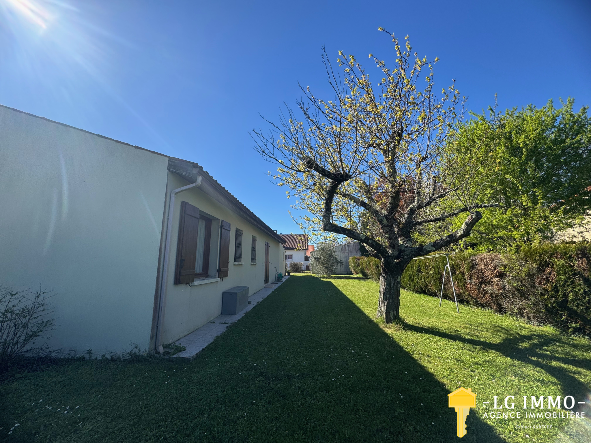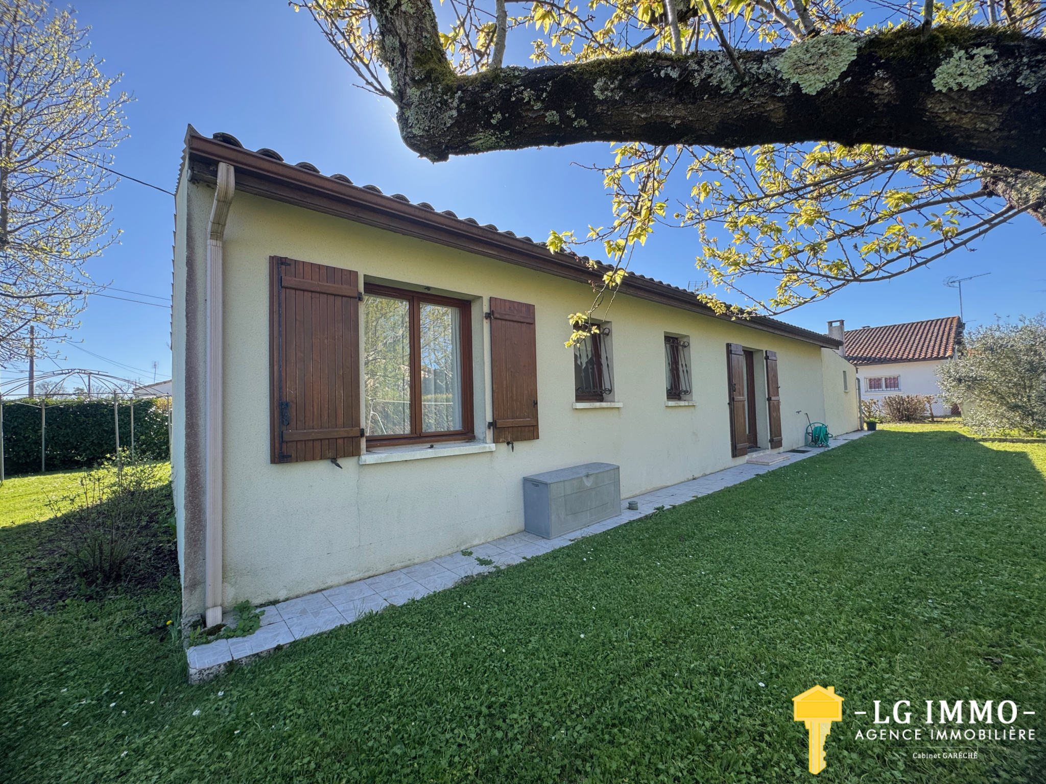 Maison de plain-pied, construite en deux temps, une première partie en 1992 de 70 m2 à remettre au goût du jour et une seconde partie en 2008 de 24 m2, soit un total de 94 m2 entourée de son jardin clos et arboré de 557 m2. Elle se compose d’un séjour /salon de 30 m2 avec deux portes fenêtres donnant accès au jardin, une cuisine aménagée et équipée de 7,65 m2, un cellier avec fenêtre de 4,62 m2 ainsi qu’un dégagement desservant un premier espace nuit comprenant deux chambres dont une avec placard de 10,38 m2 et 11,07 m2, une salle de bains de 5,13 m2 avec douche, baignoire, lavabo et bidet ainsi que des toilettes séparés. De l’autre côté du séjour, dégagement donnant accès à l’agrandissement de 24 m2 composé d’une chambre avec porte fenêtre sur la terrasse et d’une salle d’eau avec des toilettes. Un garage attenant de 19 m2 isolé complète ce bien ainsi qu’un atelier de 17 m2 situé au fond du jardin. Maison non mitoyenne, reliée au tout à l’égout, ouvertures en double vitrage bois, chauffage par radiateurs électriques, isolation du grenier par laine pulsée en 2020 et toiture en bon état. Honoraires inclus à la charge de l'Acquéreur d'un montant de 9 250 € et un prix net vendeur de 189 000 €. Foncier : 1025 €. Pour tous renseignements, merci de contacter Valérie Houdiard au 06 32 72 67 16 ou par mail : valerie.houdiardlgimmo@gmail.com Les surfaces indiquées sont données à titre indicatif et n’ont aucune valeur contractuelle. Les informations sur les risques auxquels ce bien est exposé sont disponibles sur le site Géorisques.