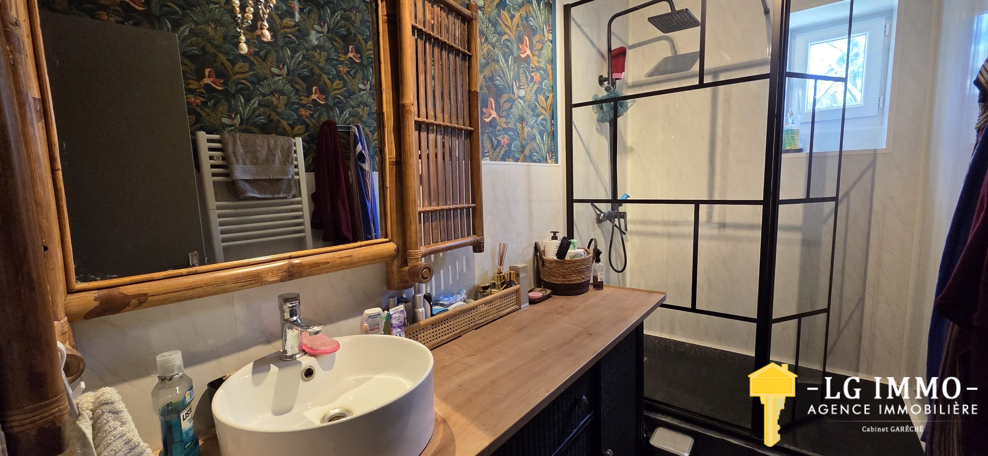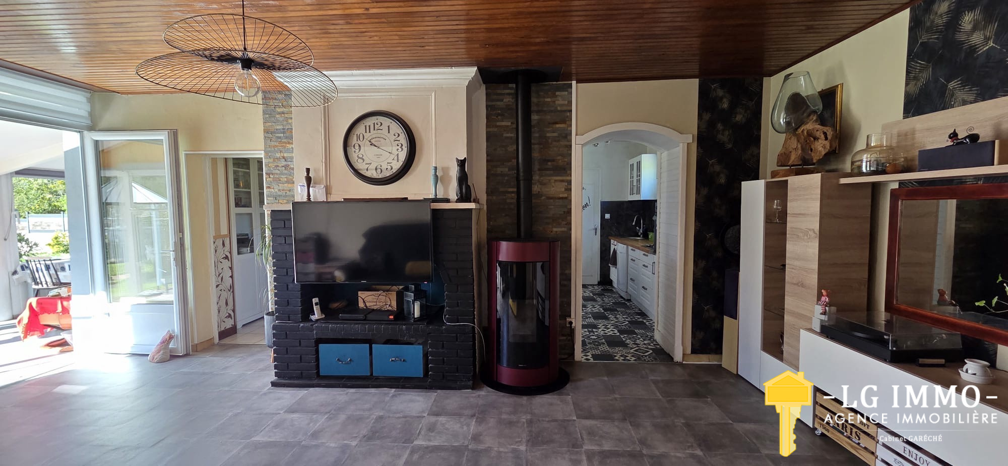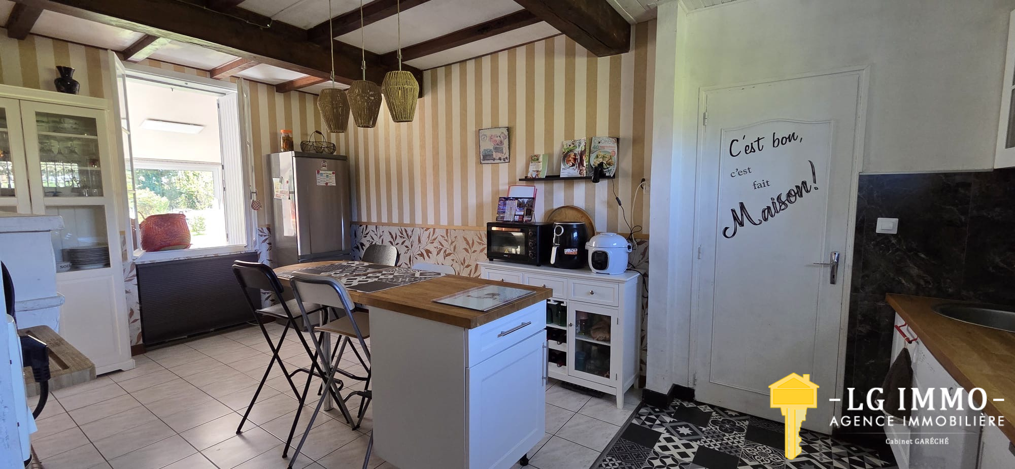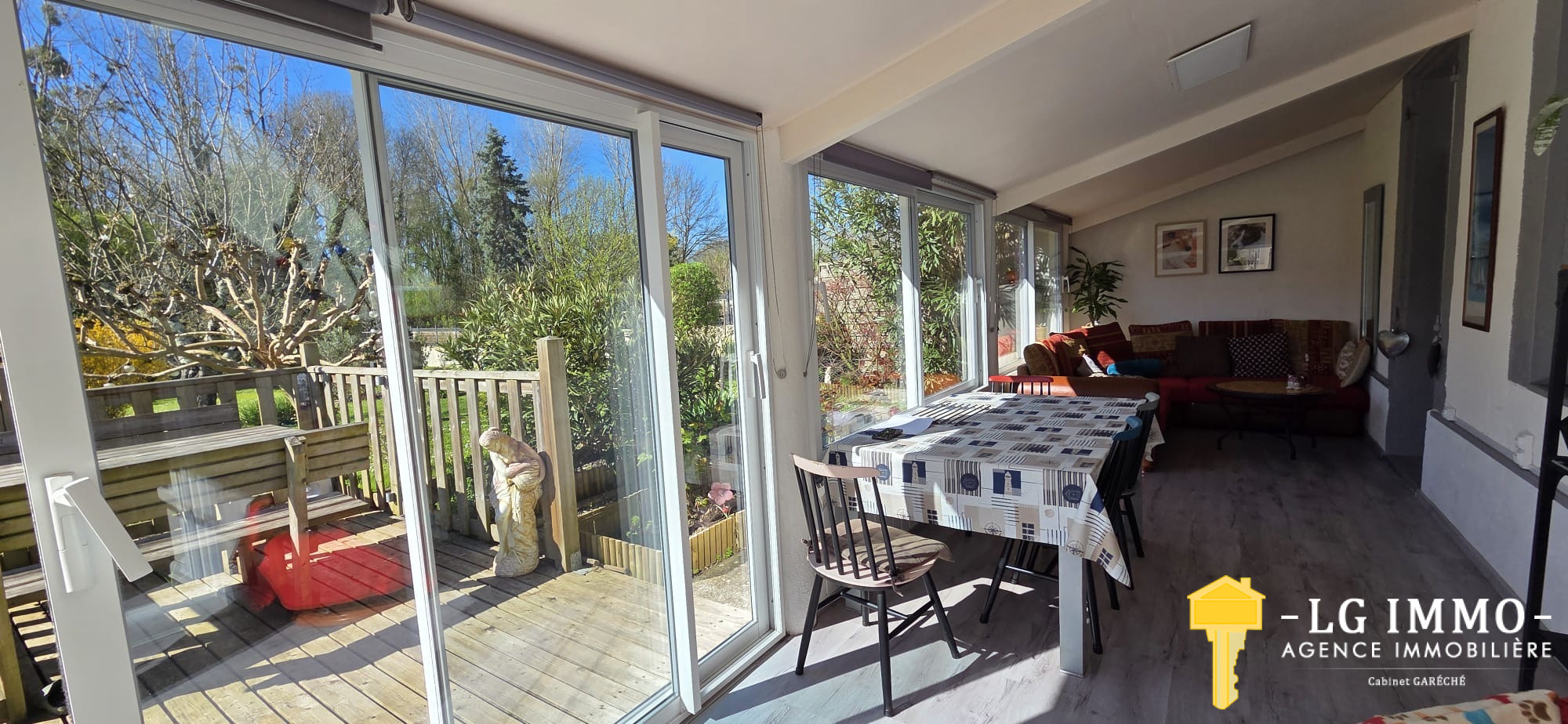 Au détour d'une ruelle en lisière de forêt, dans un village avec épicerie multi-services, bibliothèque et école maternelle, votre agence - LG IMMO - Cabinet GARÉCHÉ vous propose de venir découvrir cette charmante maison de plain-pied de 79 m2 habitables. Elle se compose d'une entrée avec dégagement desservant un séjour de 22,50 m2 avec poêle à bois, une chambre de 13,20 m2, une salle d'eau, un WC indépendant et un placard avec branchement machine. Le séjour donne accès à une cuisine dinatoire aménagée et équipée de 17,83 m2 ainsi qu'une seconde chambre de 13 m2. Un grenier aménageable permet d'envisager un agrandissement de la surface habitable. Une véranda accessible par le séjour et la seconde chambre constitue une véritable pièce de vie baignée de lumière ou vous pourrez profiter du soleil tout en étant à l'abri du vent, du froid, ou des UV. Une terrasse en bois vous accueillera volontier pour la saison estivale.