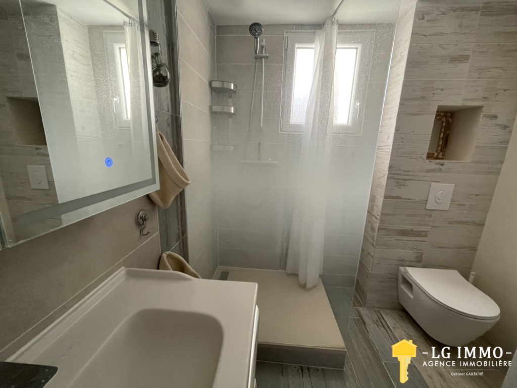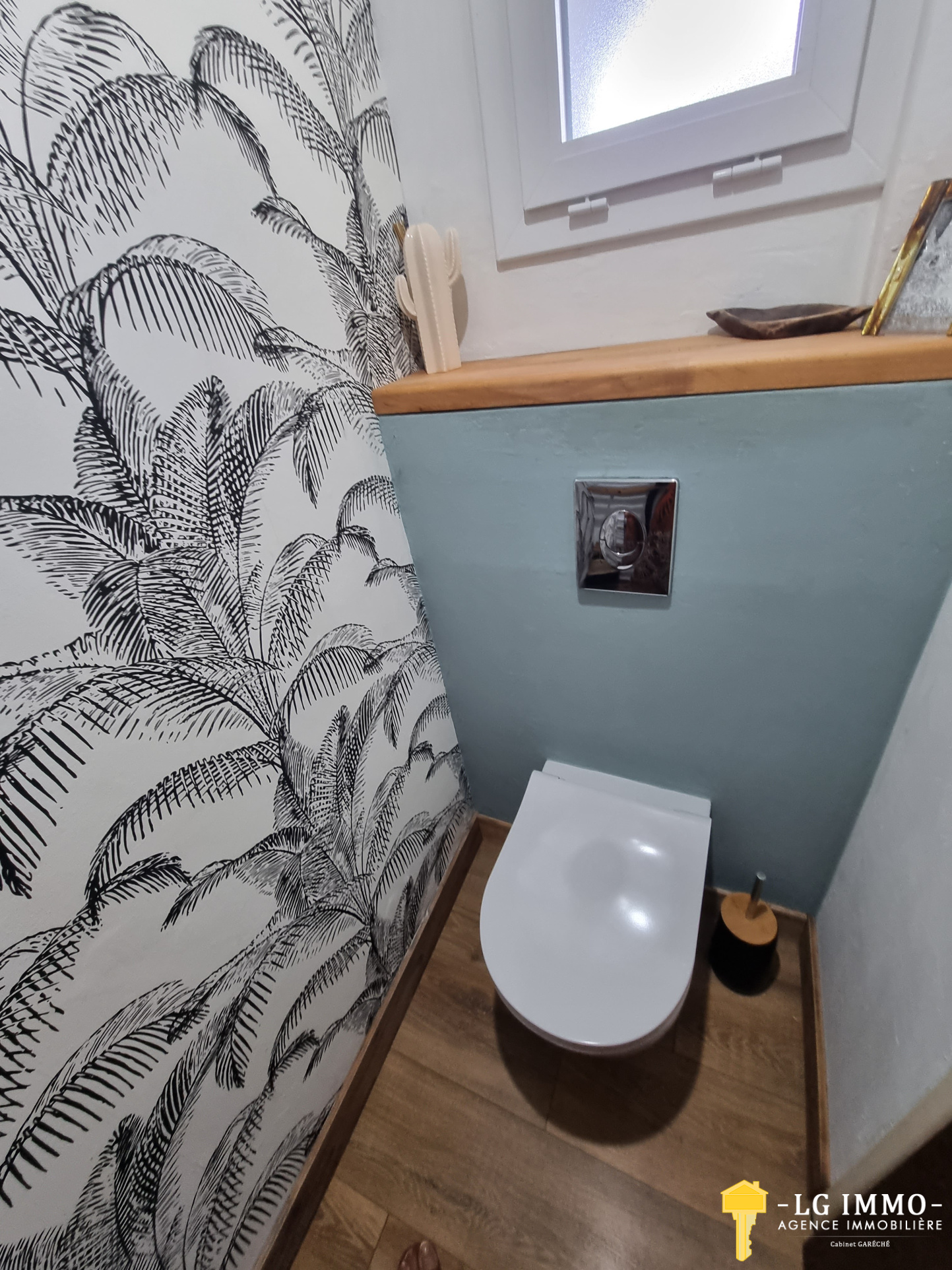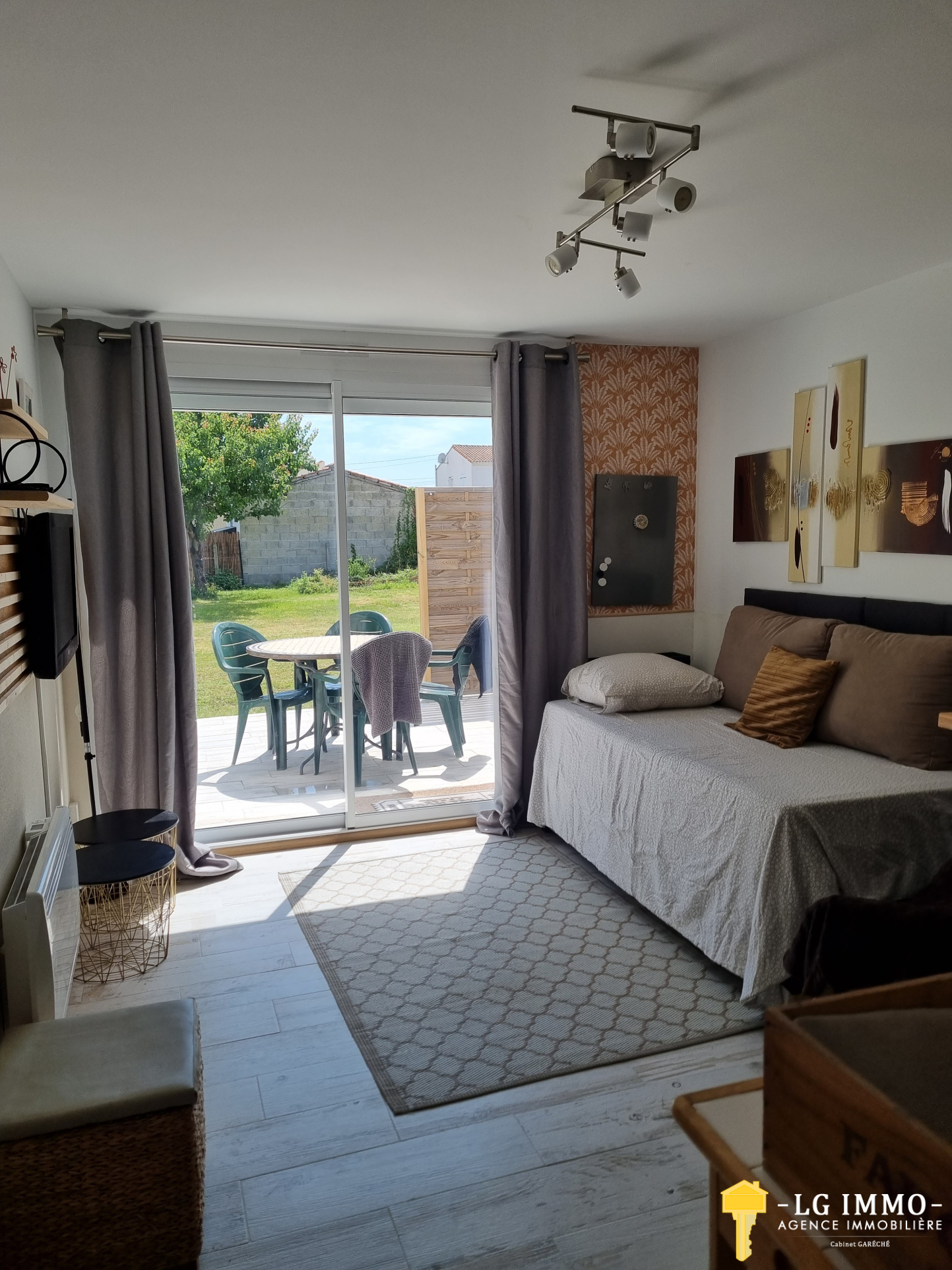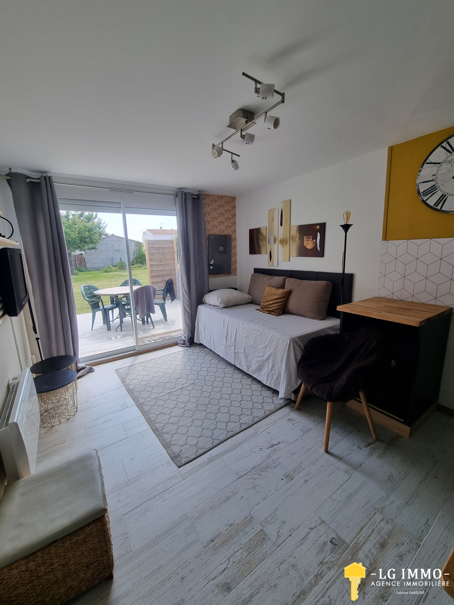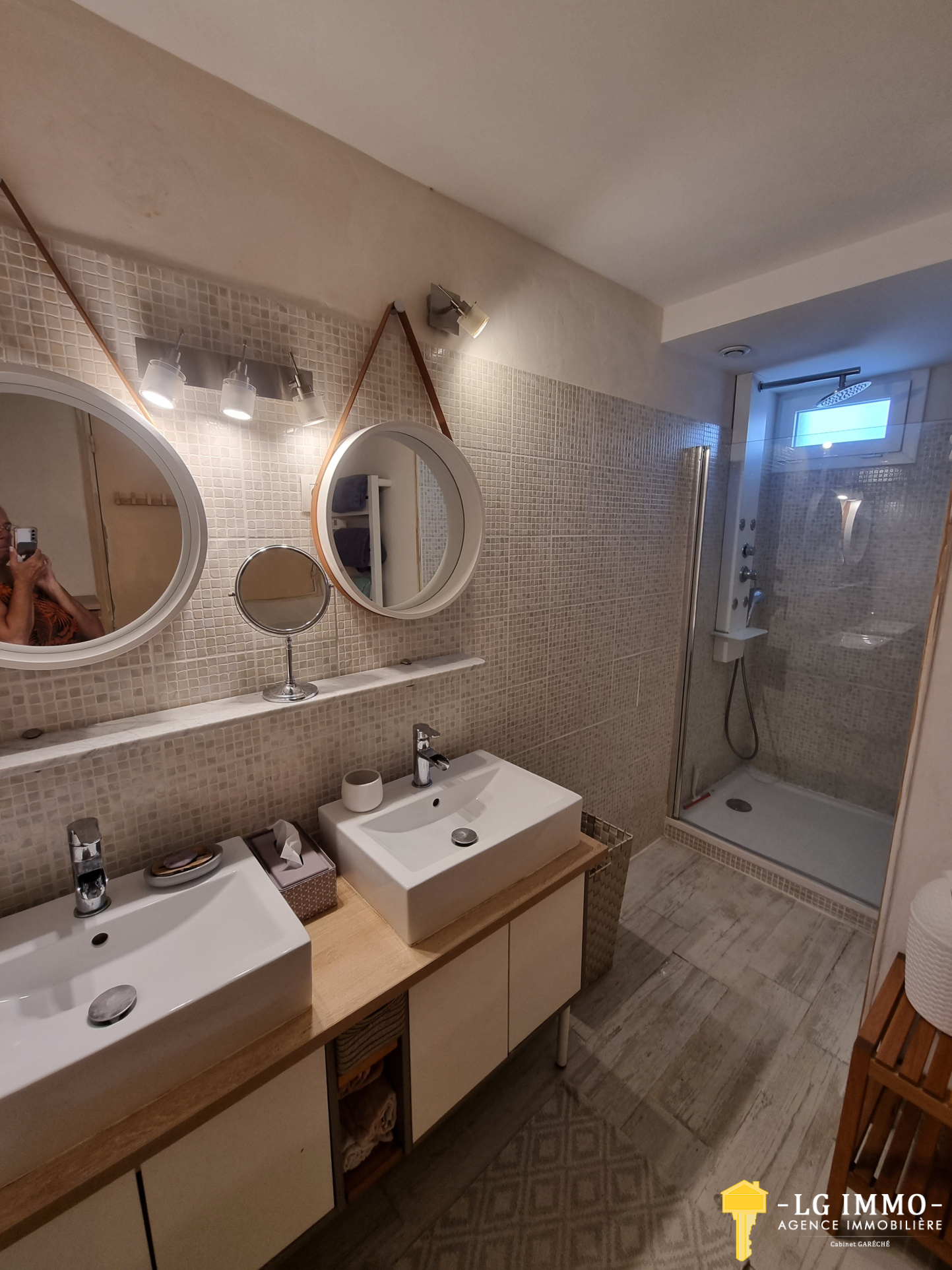 Situé au rez-de-chaussée d'une maison de deux niveaux, un appartement de 100 m2 composé d'une entrée de 5,58 m2, des toilettes séparés, une cuisine ouverte sur un salon/séjour de 35,45 m2 avec baies vitrées donnant accès à la terrasse et au jardin, un dégagement desservant une chambre de 13,93 m2 avec placard, une salle d'eau avec douche Italienne, double vasque et sèche-serviettes de 5 m2 ainsi qu'une buanderie. Attenant et communiquant par la buanderie, deux pièces avec salle d'eau et toilettes d'environ 30 m2 donnant sur une terrasse et le jardin. L'appartement, entièrement rénové, est situé au milieu de son jardin clos et arboré d'environ 500 m2. Foncier 700 €. Double vitrage, tout à l'égout, toiture en bon état. DPE : C & A. Estimation des coûts annuel d'énergie entre 800 et 1 100 €/an Cette propriété est située dans un quartier calme, entourée de jardins, avec boulangerie, superette, pharmacie et tabac/presse à pied. La zone commerciale de Royan 2 est à 3 minutes en voiture, la gare et ses plages sont à 10 minutes et la plage de Saint-Georges de Didonne à 8 minutes. Pour tous renseignements, merci de contacter Valérie Houdiard au 06 32 72 67 16 ou par mail : valerie.houdiardlgimmo@gmail.com