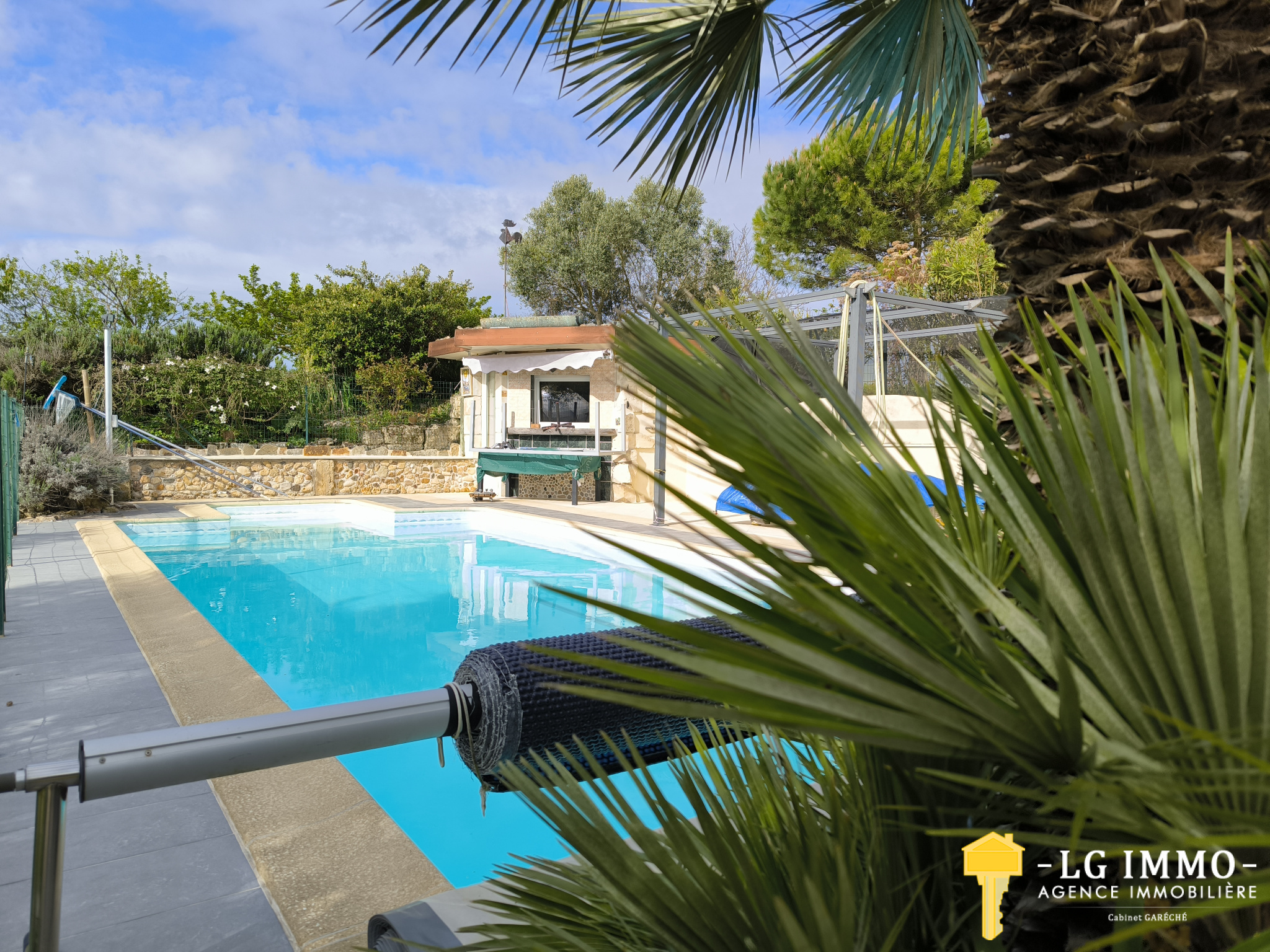 À l'extérieur, la piscine chauffée, entourée d'une terrasse, et le pool house avec son bar offrent une vue à 180° sur l'estuaire. Une tonnelle de 50 m² complète ce bien. Pour plus d'informations et de photos, contactez Yiannis au 0614442996 ou par mail à yiannis@lgimmo.info