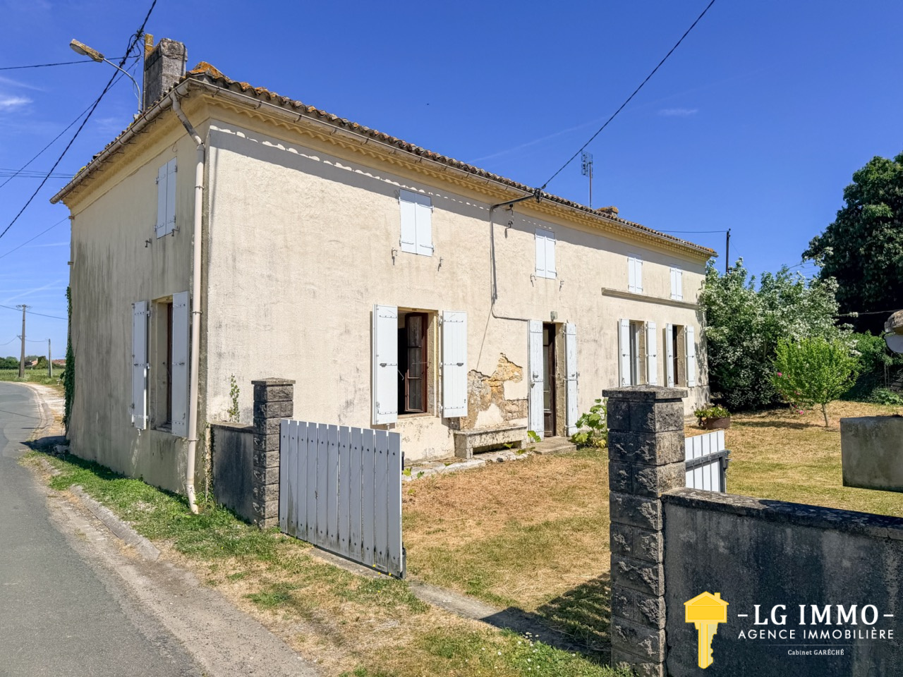 L’agence LG IMMO cabinet GARECHE, vous présente cette maison de 70m2 nécessitant des travaux de rénovation, située dans le village de Givrezac, à proximité immédiate de Gemozac.