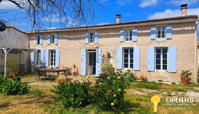 Maison charentaise 323 m2, 8 ch, garage, terrain 1,52hectares